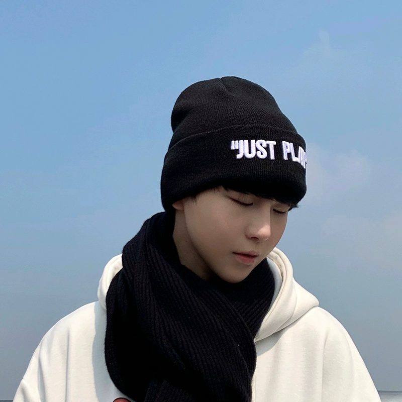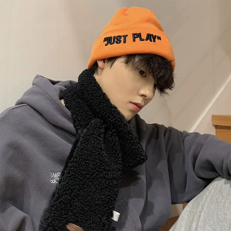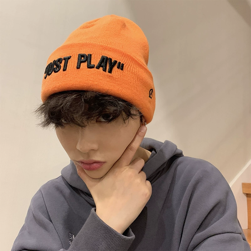 Hats for men in winter, warm and handsome, fashionable knitted hats for men, trendy Japanese style boys' Baotou orange woolen hats, cold hats