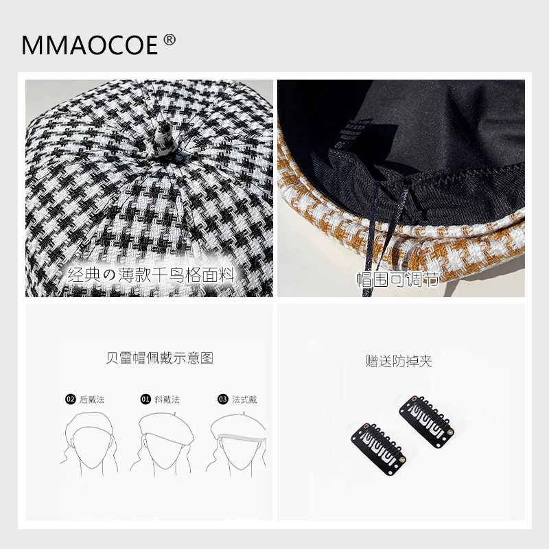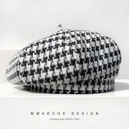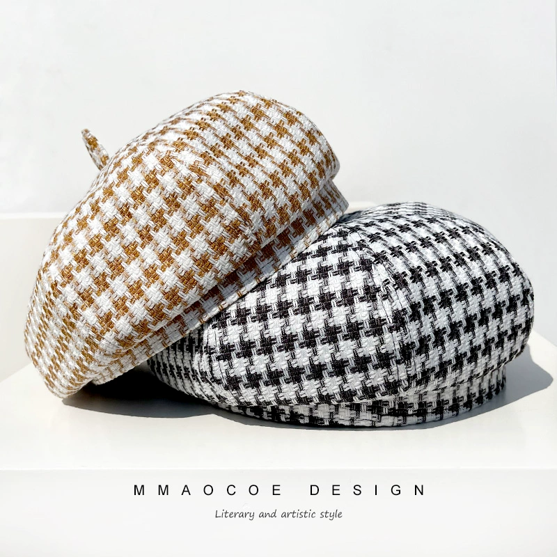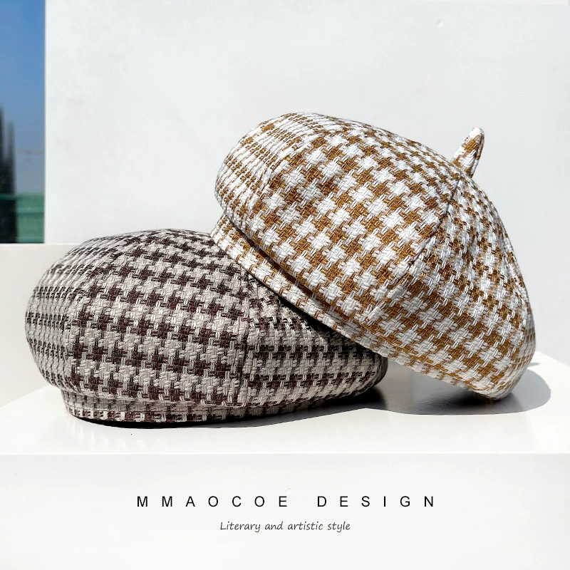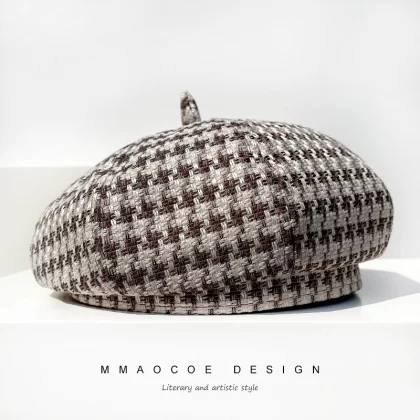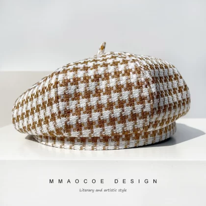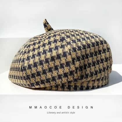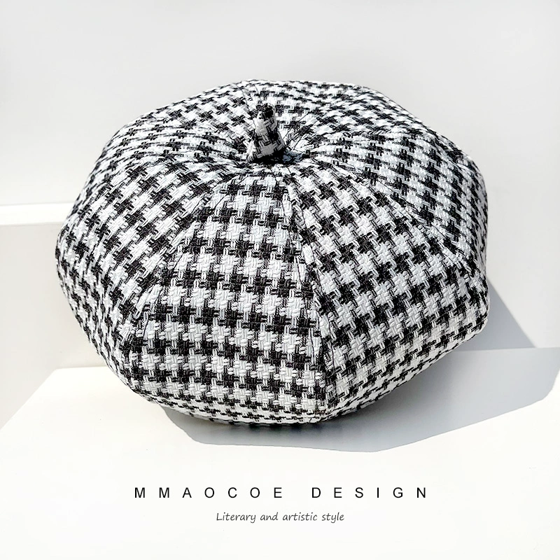 | nameOriginal | Hats for women beret 2022 new spring thin houndstooth slimming face small street trendy octagonal hat pumpkin hat |