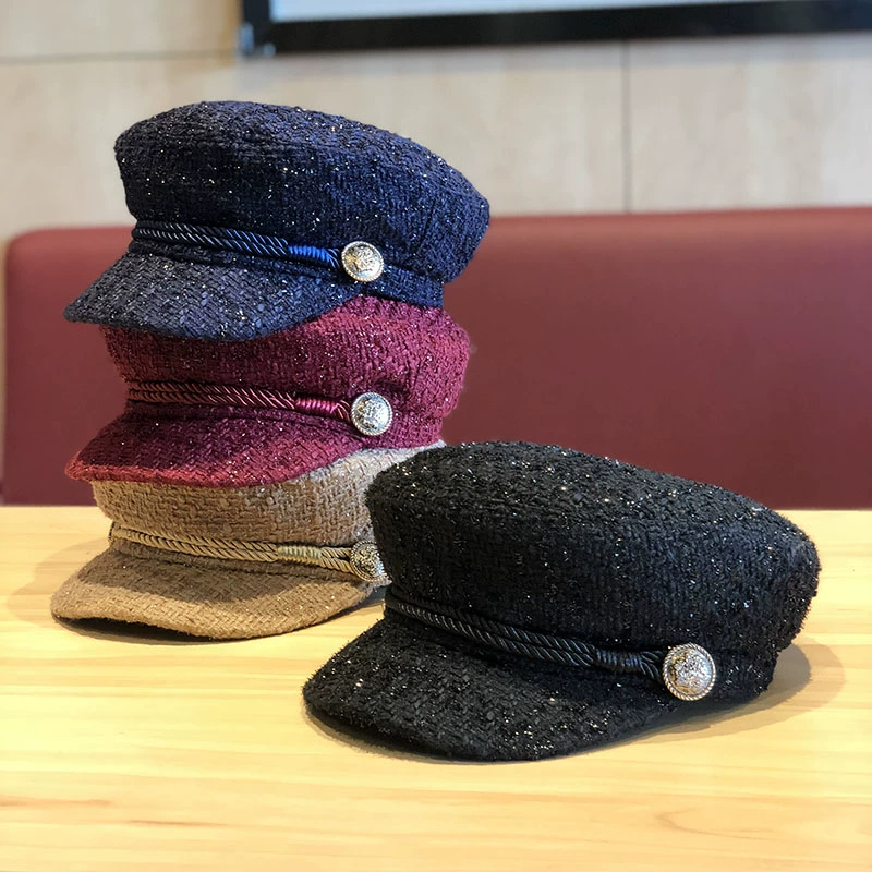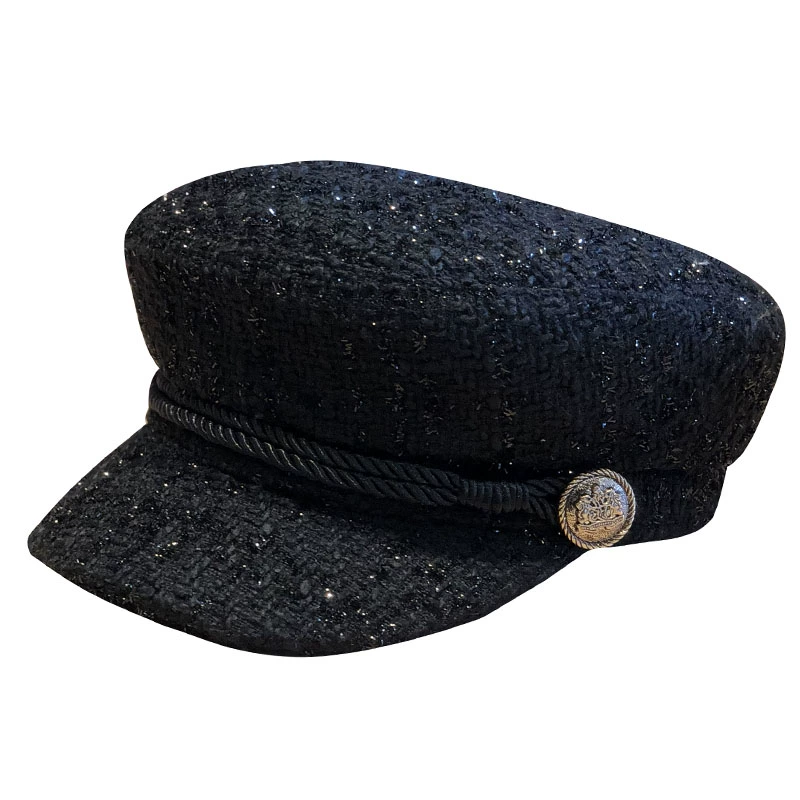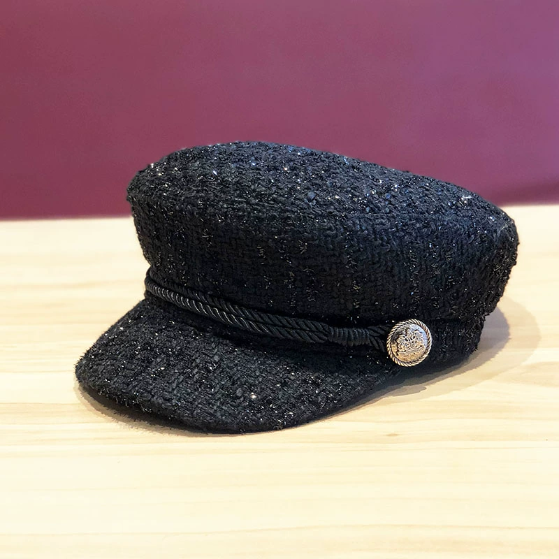 | nameOriginal | Hats for women in autumn and winter, Korean style, versatile, fashionable, silver sequins, flat-top duckbill painter's hat, beret, octagonal hat |