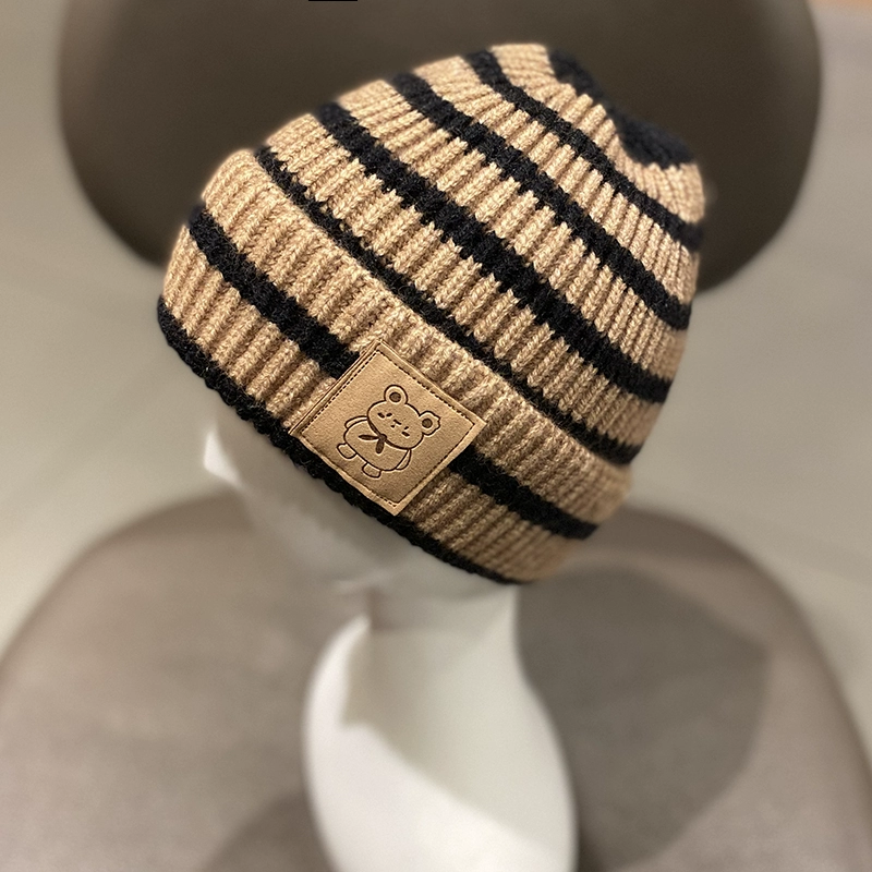Hats for women in autumn and winter, versatile knitted hats with label letters, woolen hats, warm ear protection, Korean style trendy couple pullover hats for men