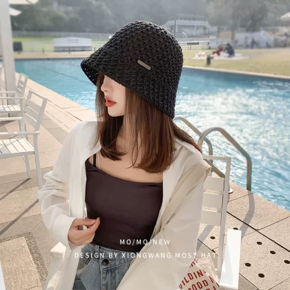 | nameOriginal | Hats for women spring and summer ins trend hollow knitted fisherman hat Korean version face-showing small basin hat suitable for round face bucket hat |