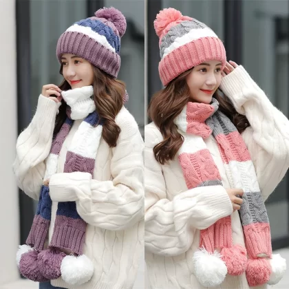 | nameOriginal | Hats Women's Autumn Beanie Hat Cute Versatile Scarf Set Korean Style Winter Fashion Plush Thickened Knitted Hat |