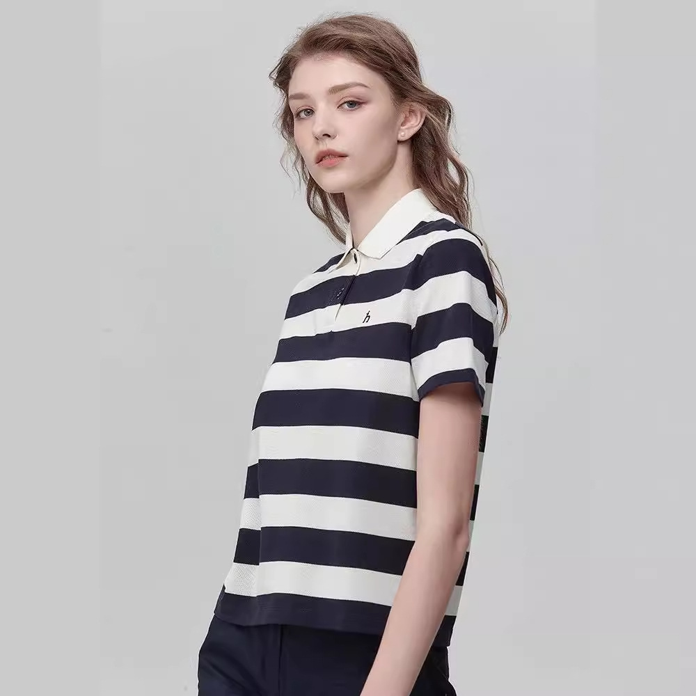 Hazzys/Haggis ladies summer new casual wide striped polo shirt short sleeve T-shirt a generation of hair