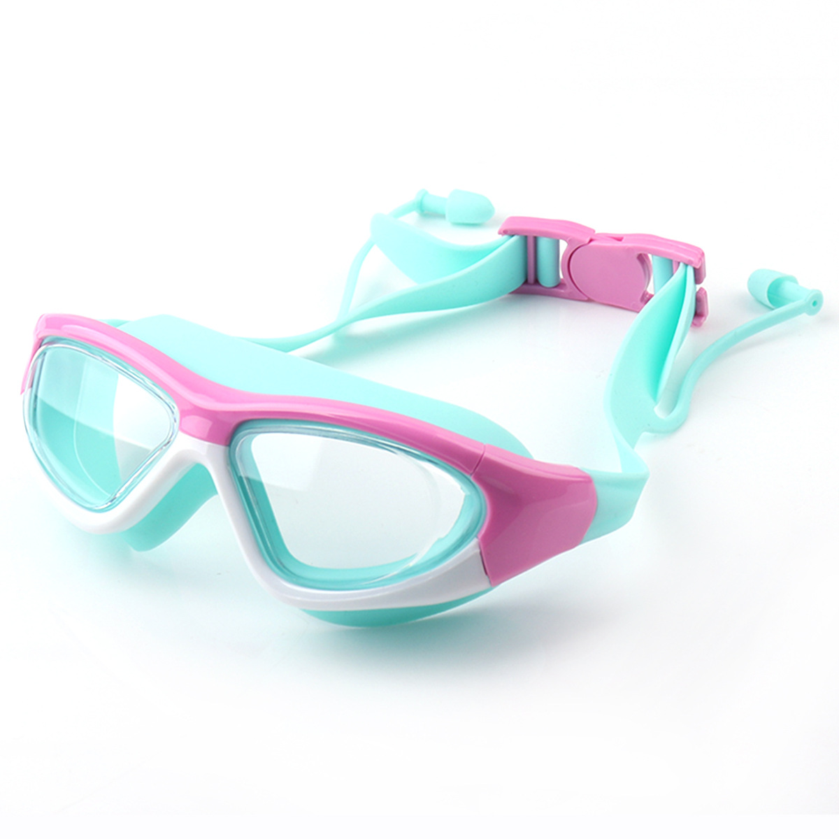 HD children's swimming goggles boys and girls anti-fog swimming glasses large frame goggles comfortable silicone one-piece earplug 5021