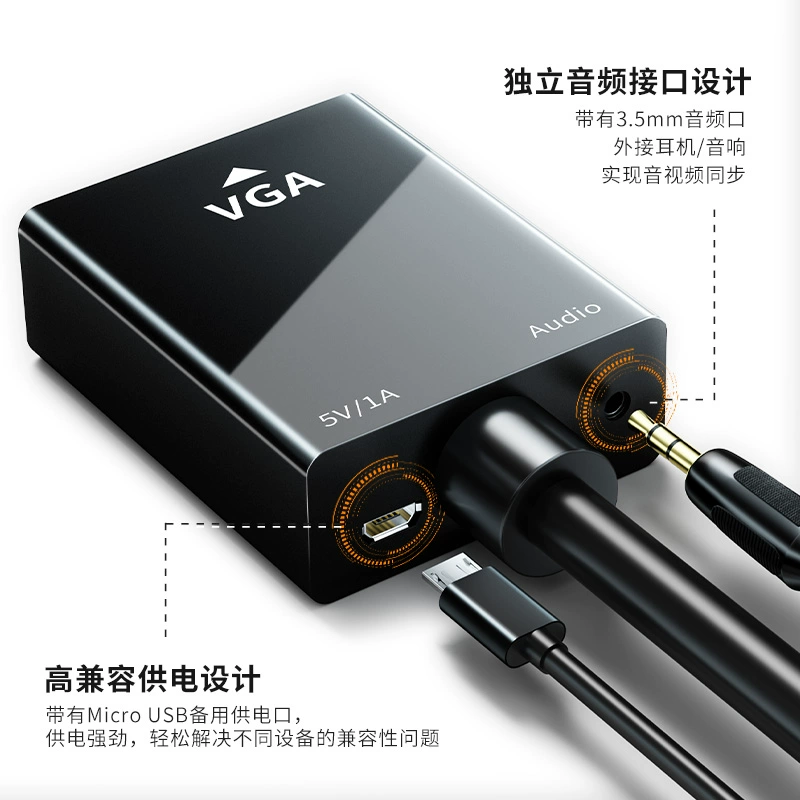 HDMI to VGA adapter cable is suitable for notebook desktop computer graphics card connection VGA monitor projector TV network set-top box interface adapter cable HD connector with audio