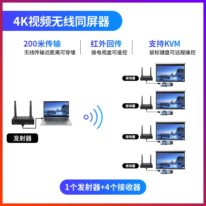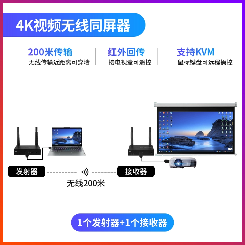 HDMI wireless screen projector KVM audio and video synchronization 4K extender 200 meters transmitter mouse and keyboard control