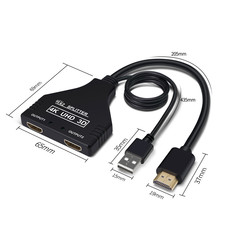 HDTV Distributor 1 in 2 with USB Power Supply HDTV Distributor 1 in 2 out 1 in 2 out 4K