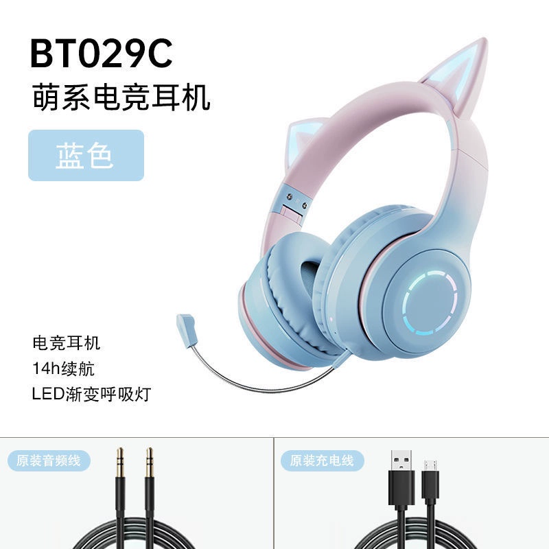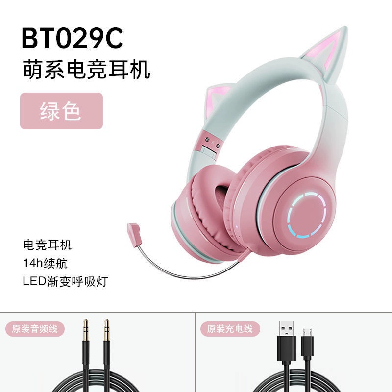 | nameOriginal | Head-mounted wireless Bluetooth headset, luminous cat ears with microphone, game music headset, girly heart, internet celebrity pink |