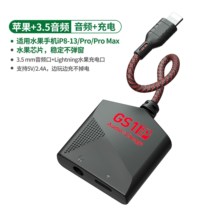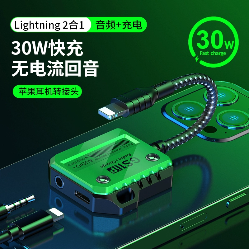 | nameOriginal | Headphone adapter 30W fast charging GS1 ip wired charging two-in-one music listening suitable for Apple 12/13/14 mobile phone Lightning to 3.5mm flat head to round head eating chicken game open mic |