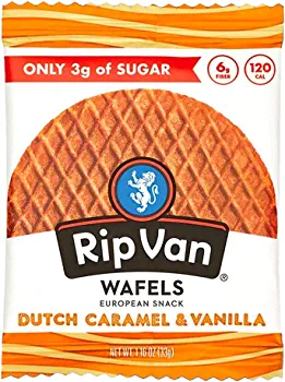 Endurance athletes love our low sugar, high carb ratio to keep them training longer and stronger. Each box contains 12 individually wrapped Dutch Caramel & Vanilla stroopwafels. With Rip Van WAFELS, you can enjoy tasty indulgent snacks without sacrificing your diet.