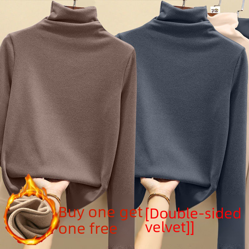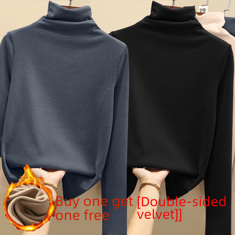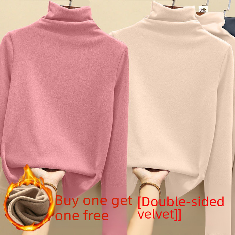 | nameOriginal | Heap Collar Base Shirt Single/Two-Piece Velvet Thickened Women's Winter Semi-High Collar Hair T-Shirt Women's Slim-Fit Warm Clothes |