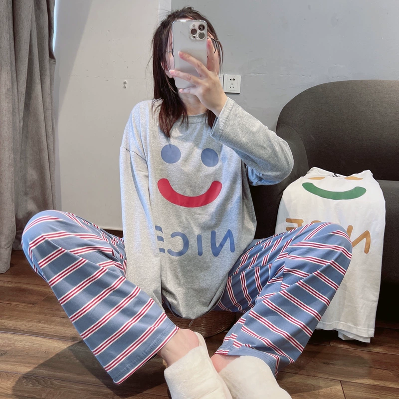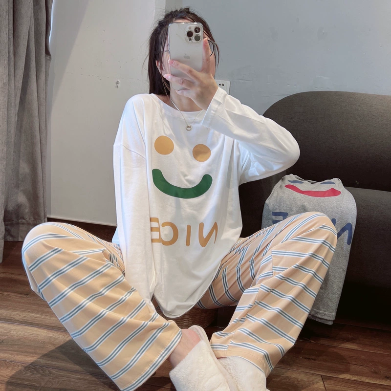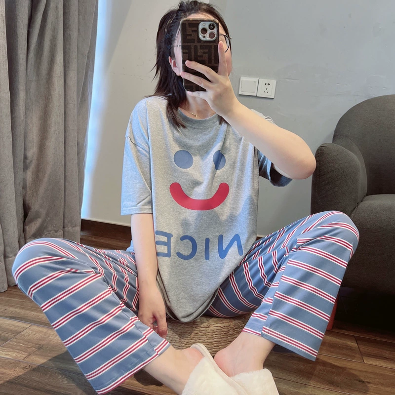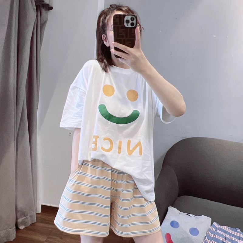| nameOriginal | HEARMES "original" cute smiling face striped cotton pajamas for women summer short-sleeved shorts are loose and can be worn outside  |