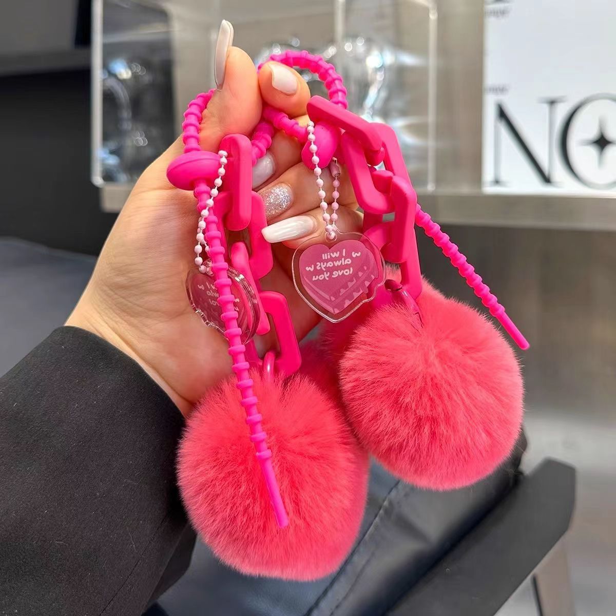 | nameOriginal | Heart Chain Keychain Imitation Rex Rabbit Hair Silicone Exquisite School Bag Pendant Love Ornaments Plush Bag Pendant |