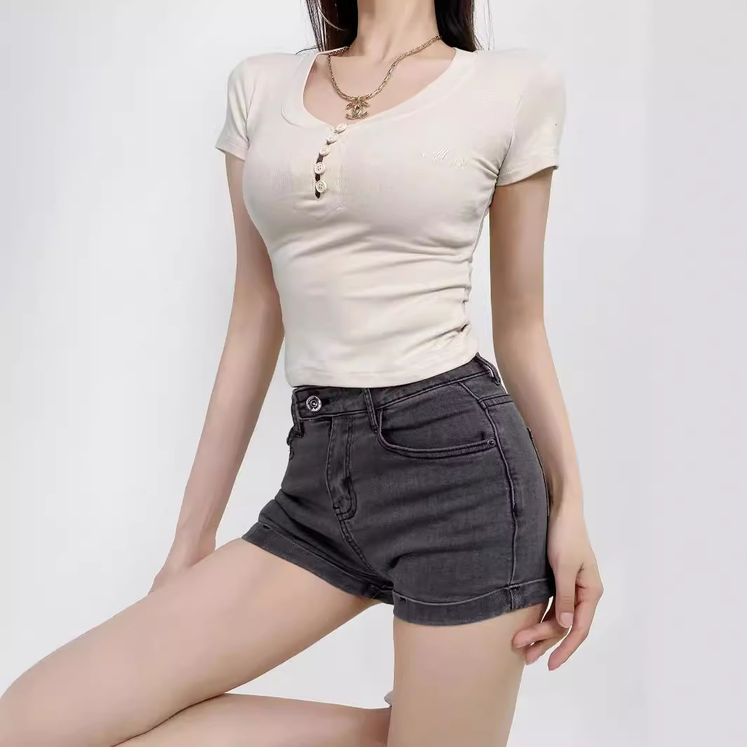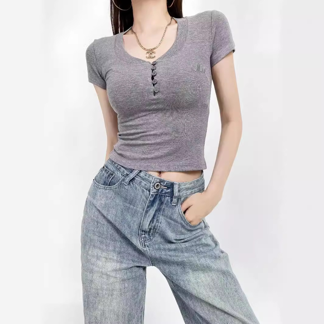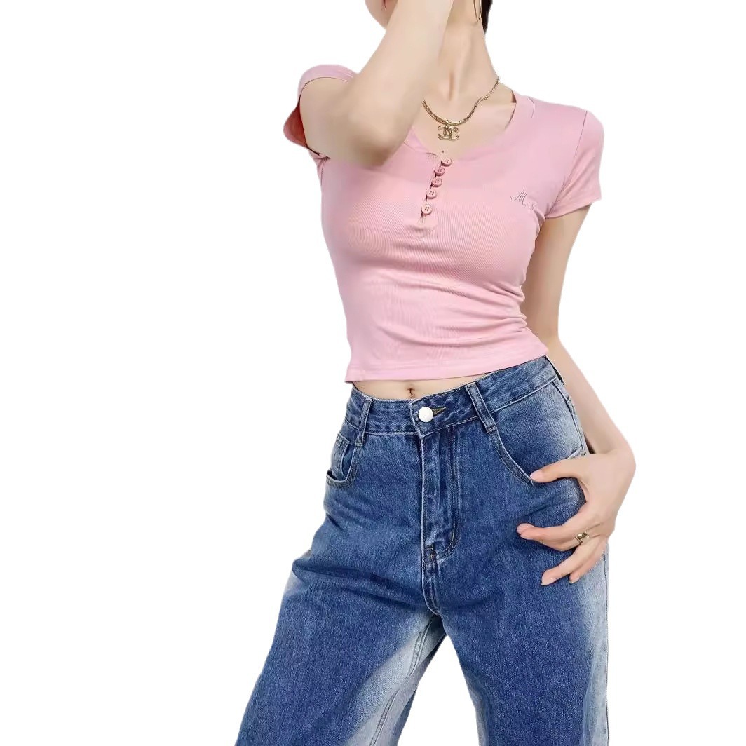 | nameOriginal | Heart Collar Embroidered Cropless Short-Sleeved T-Shirt Slim-Fit Figure Small Sexy Hot Girl Base Shirt Women's Top |