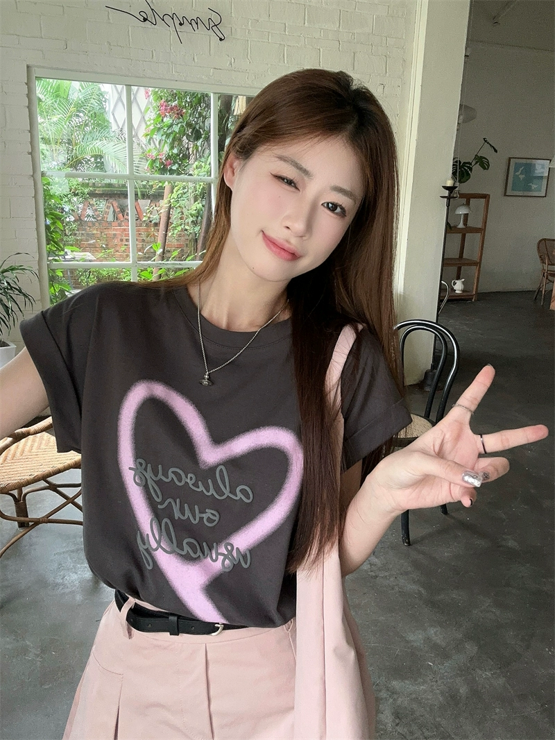 | nameOriginal | Heart elastic waist pleated A-line printed short-sleeved T-shirt |
