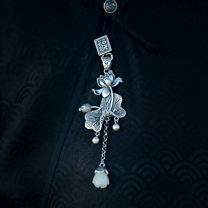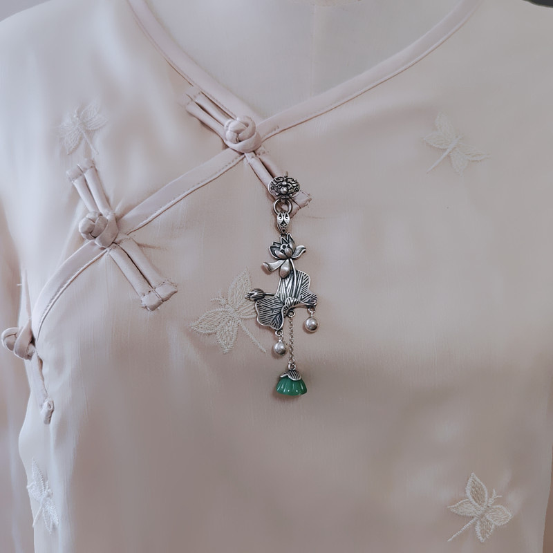 | nameOriginal | [Heart Lotus] Classical Chinese Style s925 Sterling Silver Buckle Jade Cheongsam Hanfu Pendant Tassel Accessories Women |