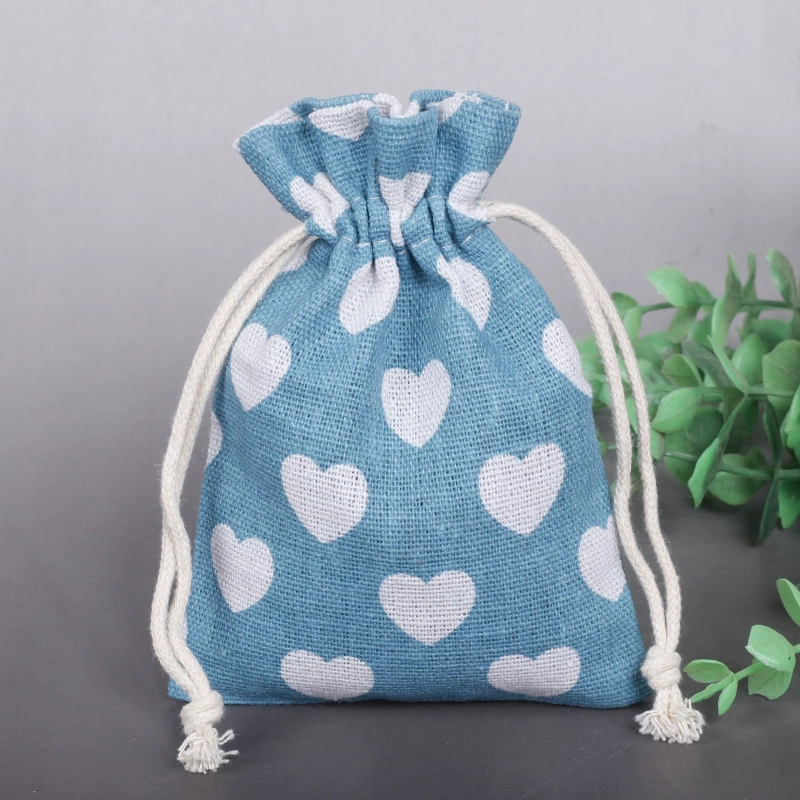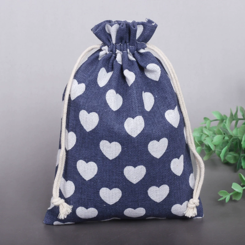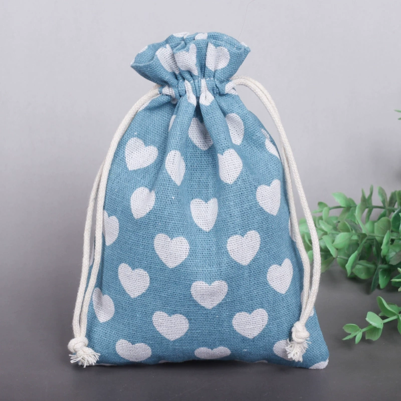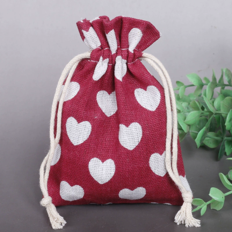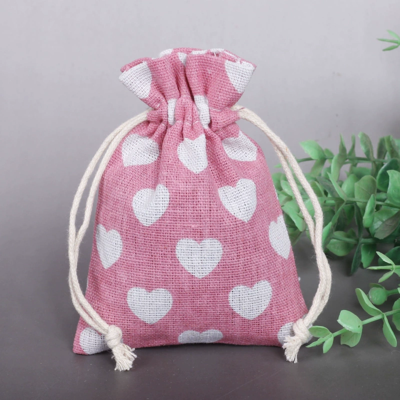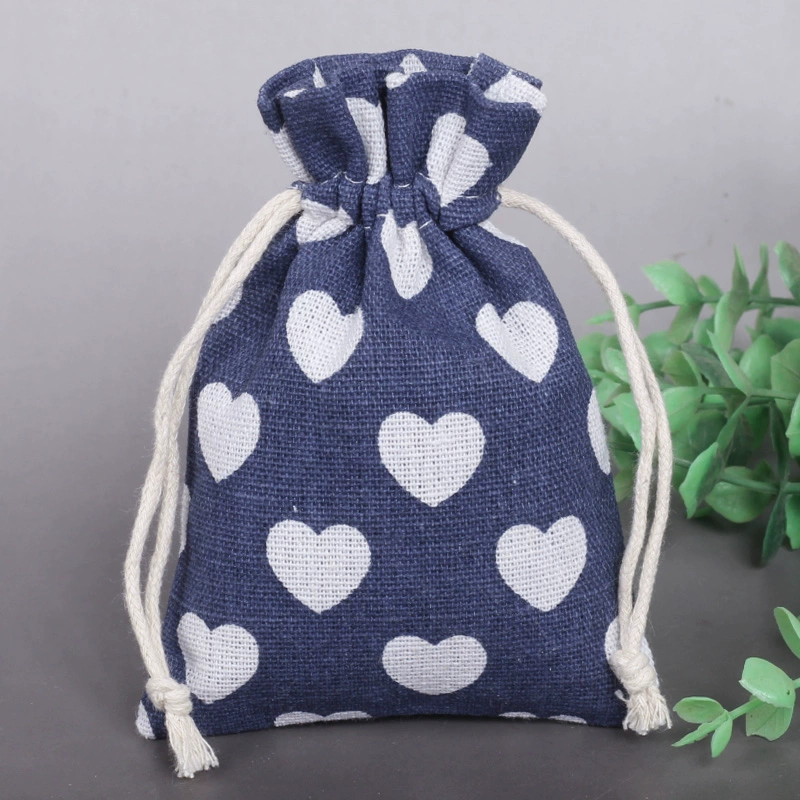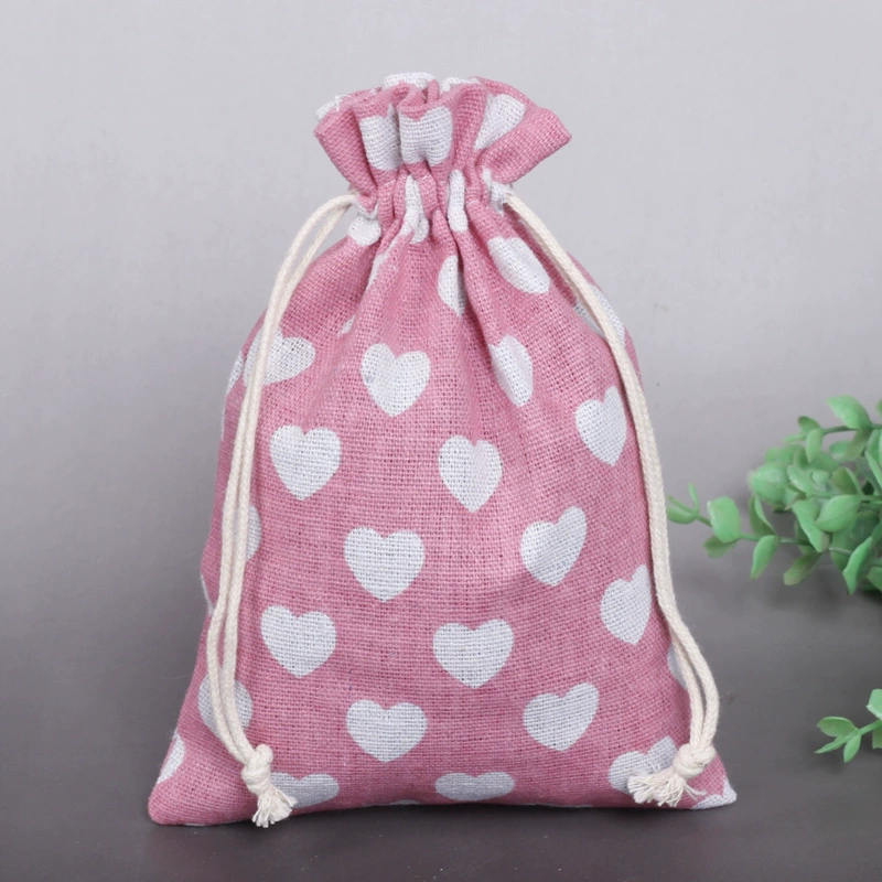 Heart printed drawstring bamboo charcoal bag 9*12 linen bag