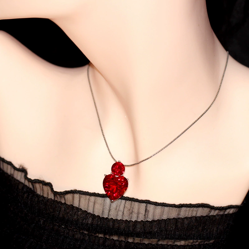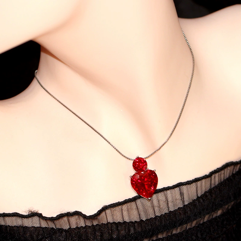 | nameOriginal | Heart-shaped large pendant ruby female pigeon blood red 925 sterling silver pendant jewelry birthday necklace pendant single Japanese and Korean |