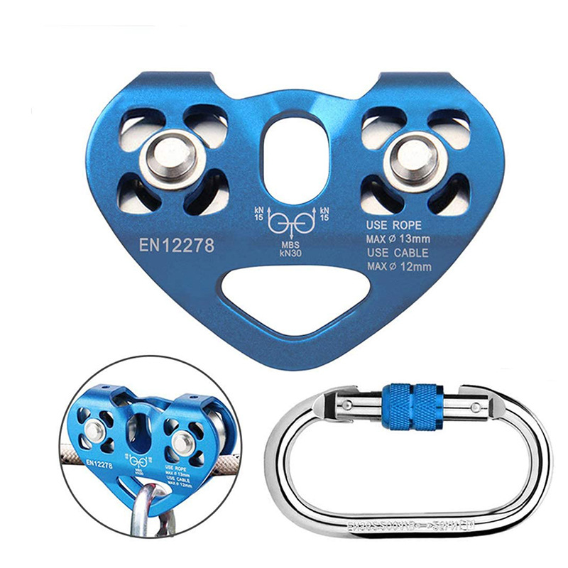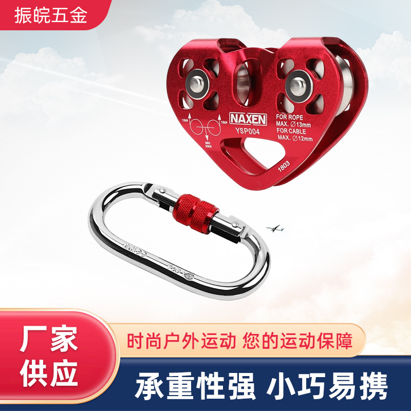 | nameOriginal | Heart-shaped rock climbing double-shaft pulley O-shaped screw-thread steel lock rope 13m high-altitude transportation hanging wheel equipment pulley main lock Outdoor |