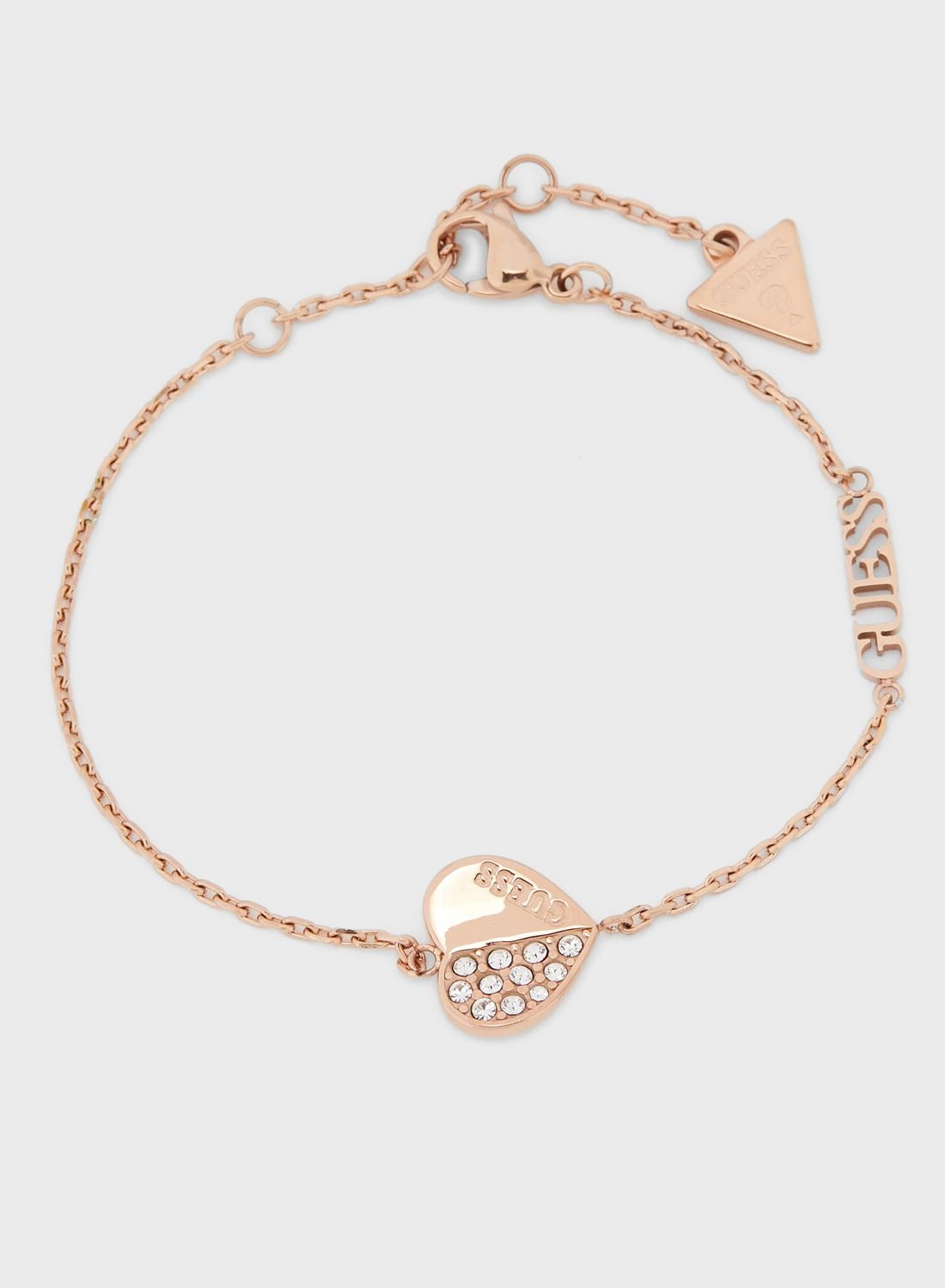 Heart-shaped stud earrings and bracelet set with plain and paved design.