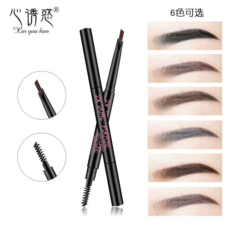 Heart temptation eyebrow pencil double-headed lock color automatic waterproof sweat no makeup eyebrow powder cream no block beginner thrush cheap