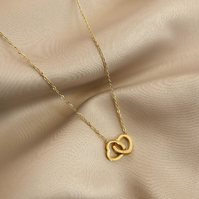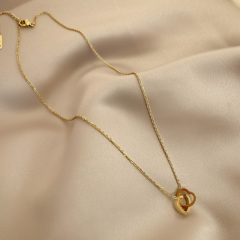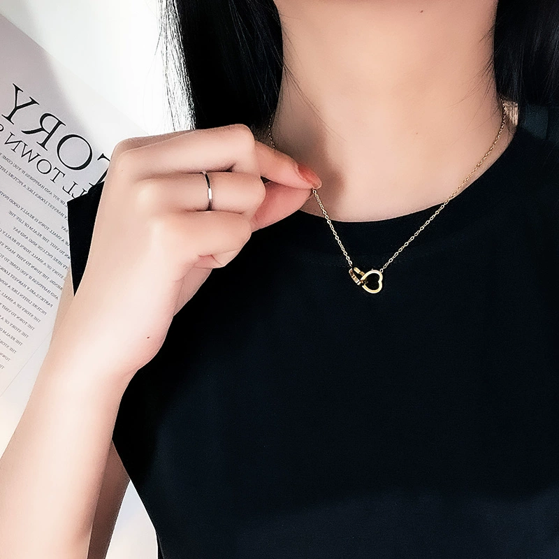 | nameOriginal | Heart to heart double love necklace titanium steel non-fading clavicle chain simple couple bestie personalized jewelry for men and women |
