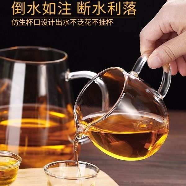 | nameOriginal | Heat-resistant thickened fair cup tea drain integrated suit glass tea making tea dividing tea set kung fu tea set tea sea public cup large |