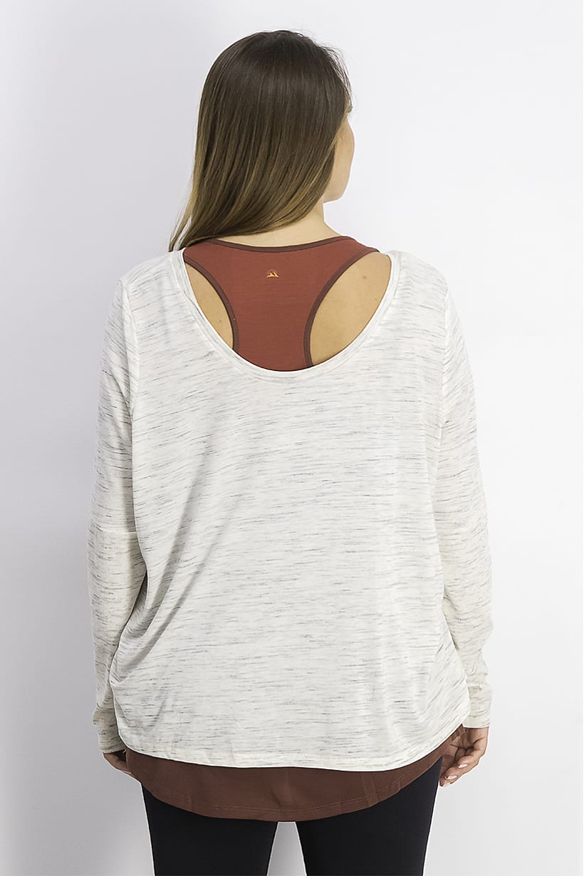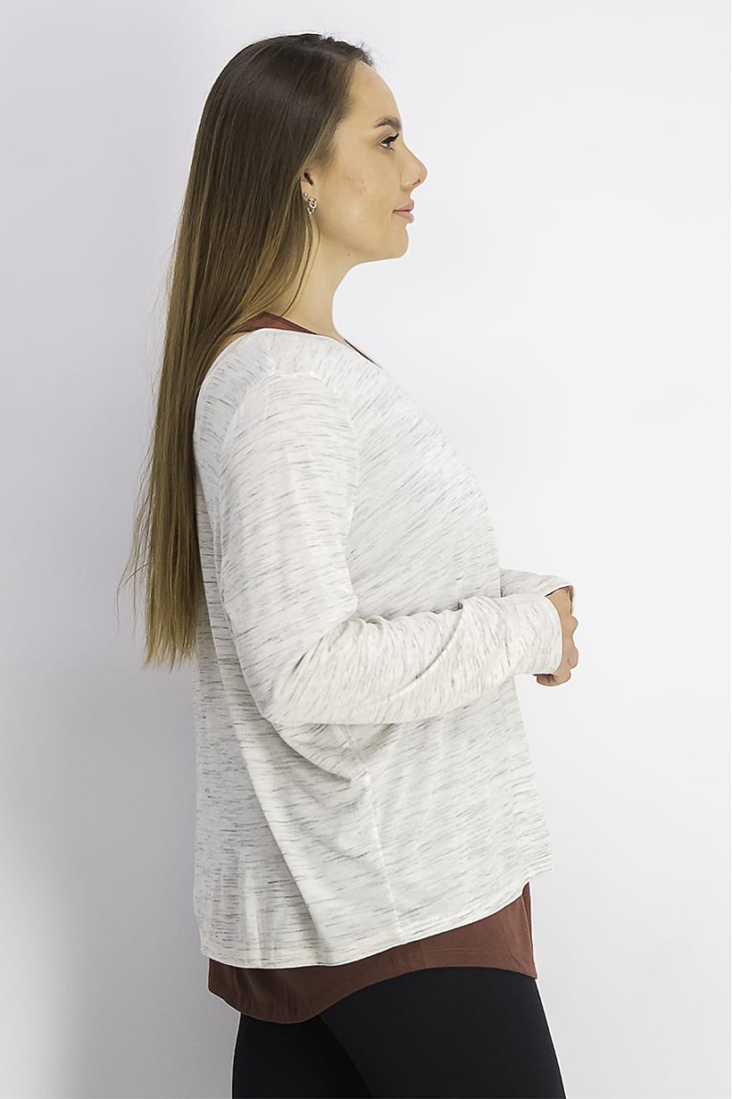 Care : Machine washable, Ideal For : Women, Sleeve Length : Long Sleeve, Type of Sport : Training, Types of Hem : Straight hem, Types of Neckline & Collar : Scoop neckline, Types of Sleeve : Longsleeve, Fabrics : 65% Polyester, 35% Viscose, Occasion : Sport, Pattern & Print : Heather, Sportswear Type : Tops, Types of Closures : Pullover, Color Family : Grey,