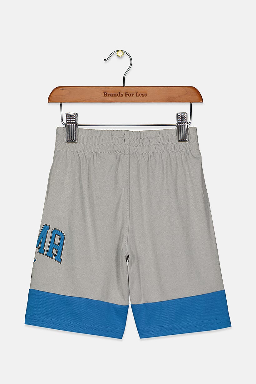 Care : Machine washable, Ideal For : Boys, Type of Sport : Training, Disclaimer : Product color may slightly vary due to photographic lighting sources or your monitor settings., Fabrics : 100% Polyester, Occasion : Sport, Pattern & Print : Brand Logo, Sportswear Type : Shorts, Color Family : Grey,