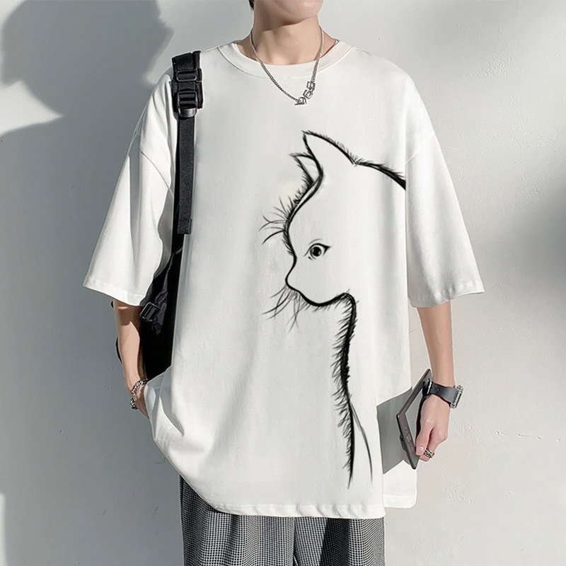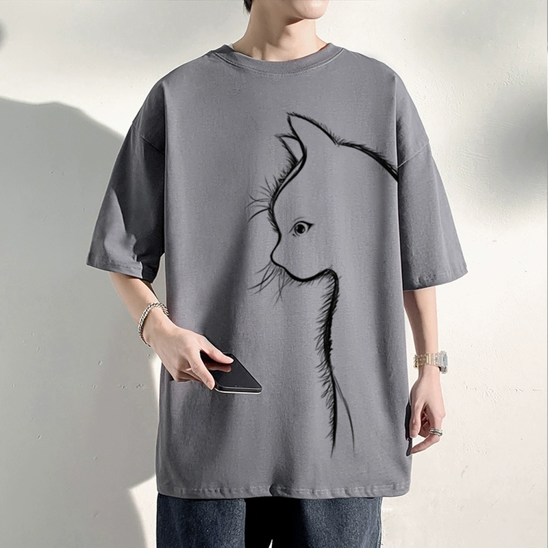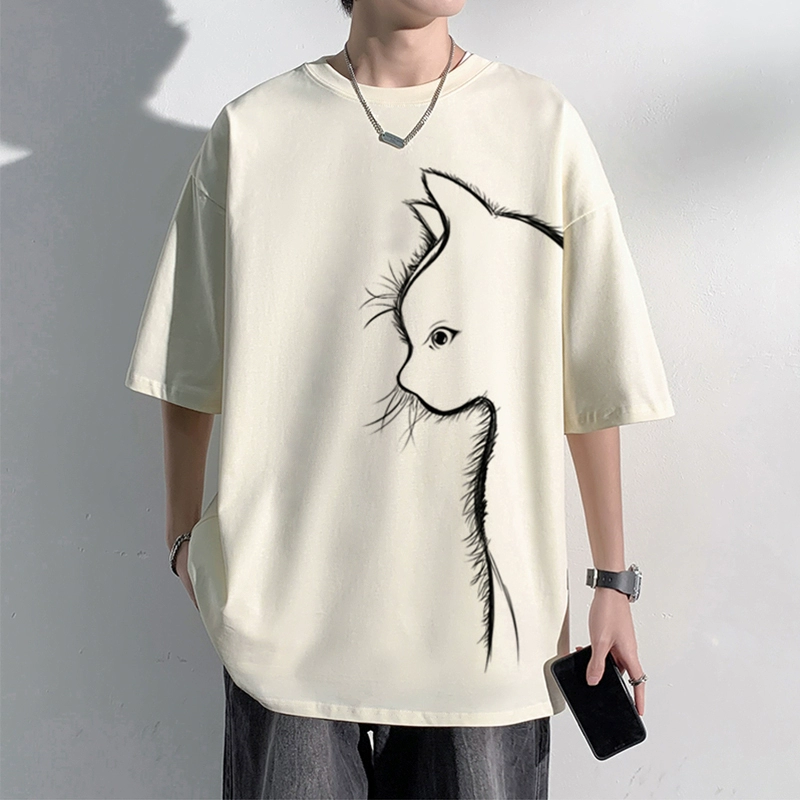 | nameOriginal | Heavy cat print niche large size short-sleeved T-shirt |