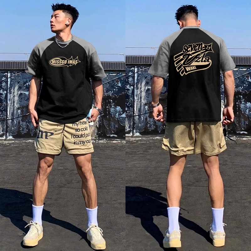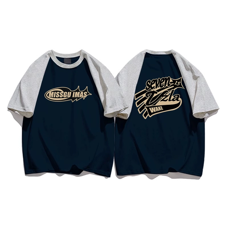 | nameOriginal | Heavy contrast raglan student patchwork short-sleeved T-shirt |