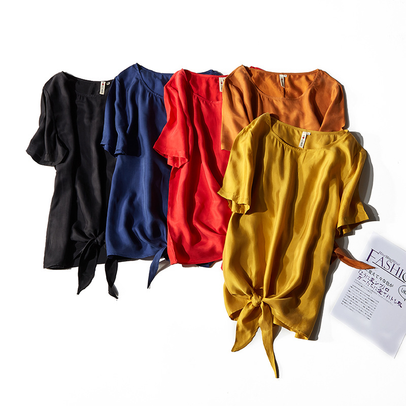 | nameOriginal | Heavy copper ammonia Silk women's T-shirt casual solid color short sleeve personalized silk top T-shirt casual Joker one wholesale |