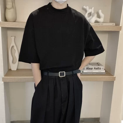 | nameOriginal | Heavy double sand half turtleneck solid color casual short-sleeved T-shirt |