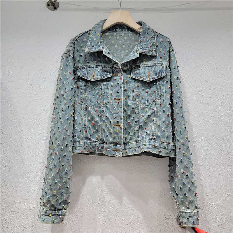 | nameOriginal | Heavy-duty Beaded Diamond-encrusted Denim Jacket Women's 2024 Spring New Loose Slimming All-match European Long-sleeved Jacket |