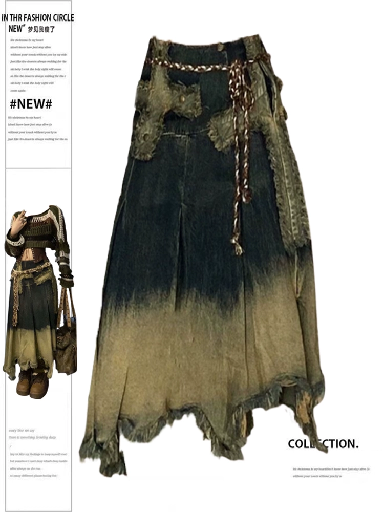 | nameOriginal | Heavy-duty distressed raw edge y2k niche denim skirt |