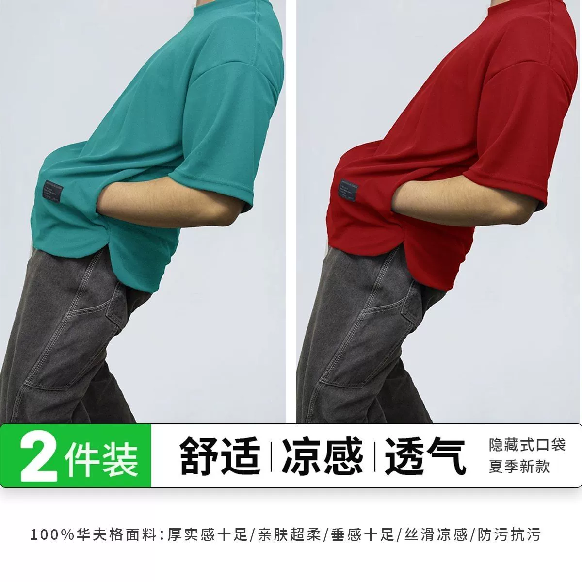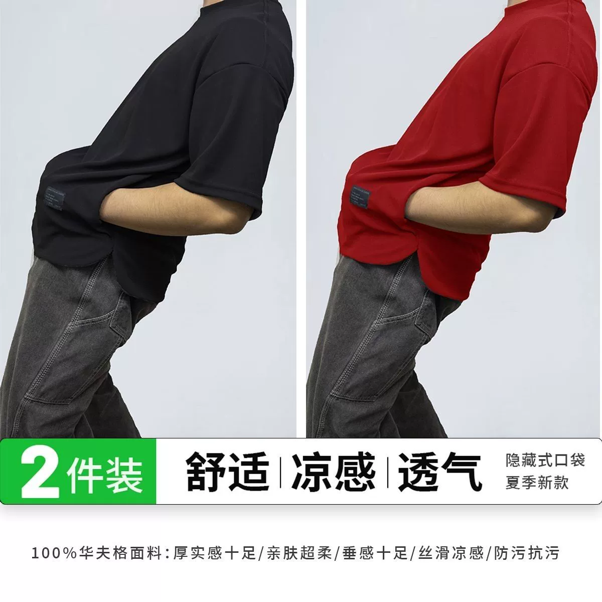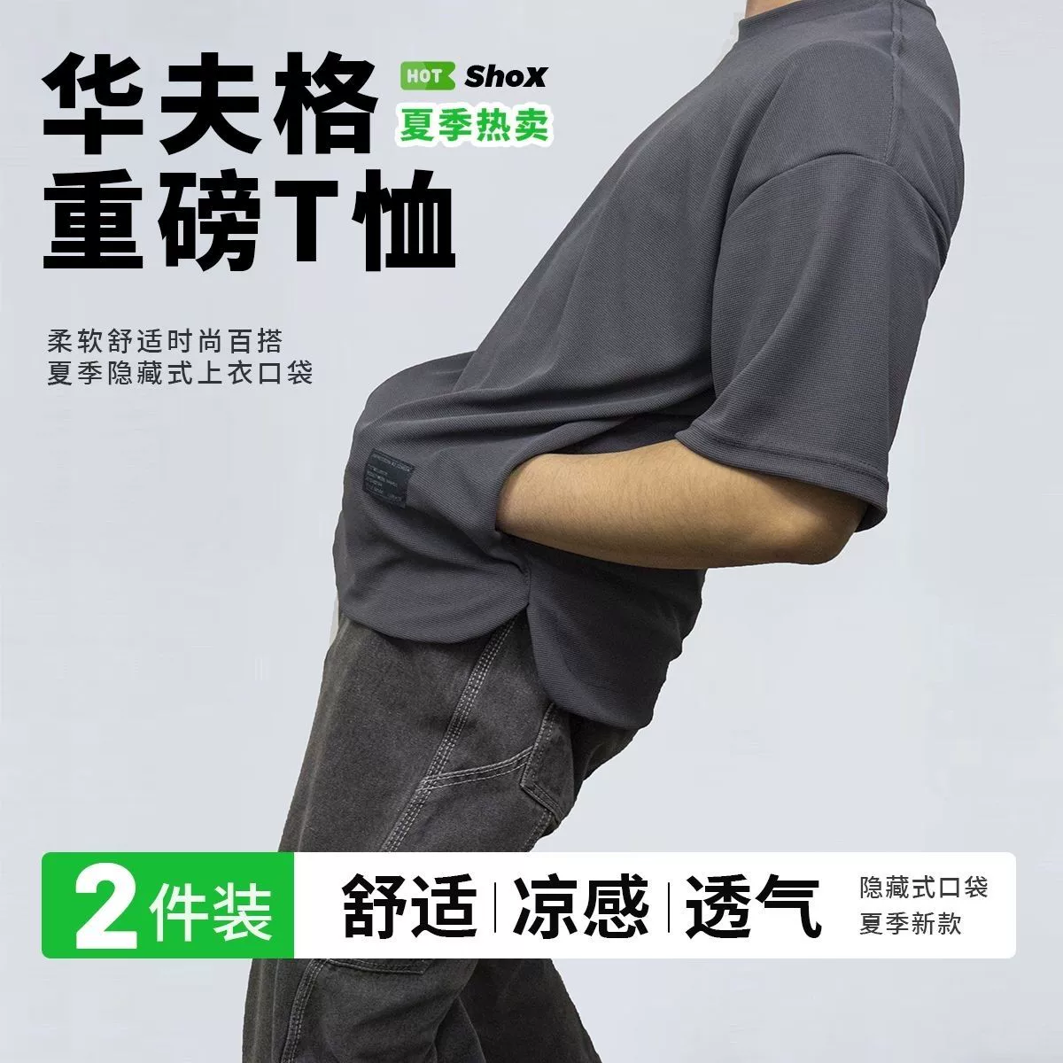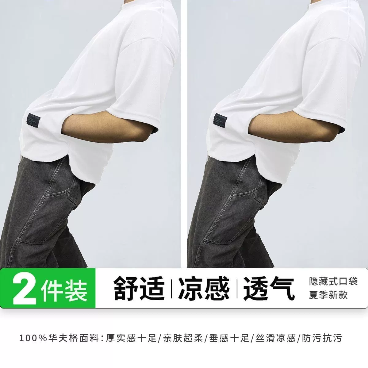 Heavy-duty pocketed, cool and breathable men's short-sleeved two-piece pack