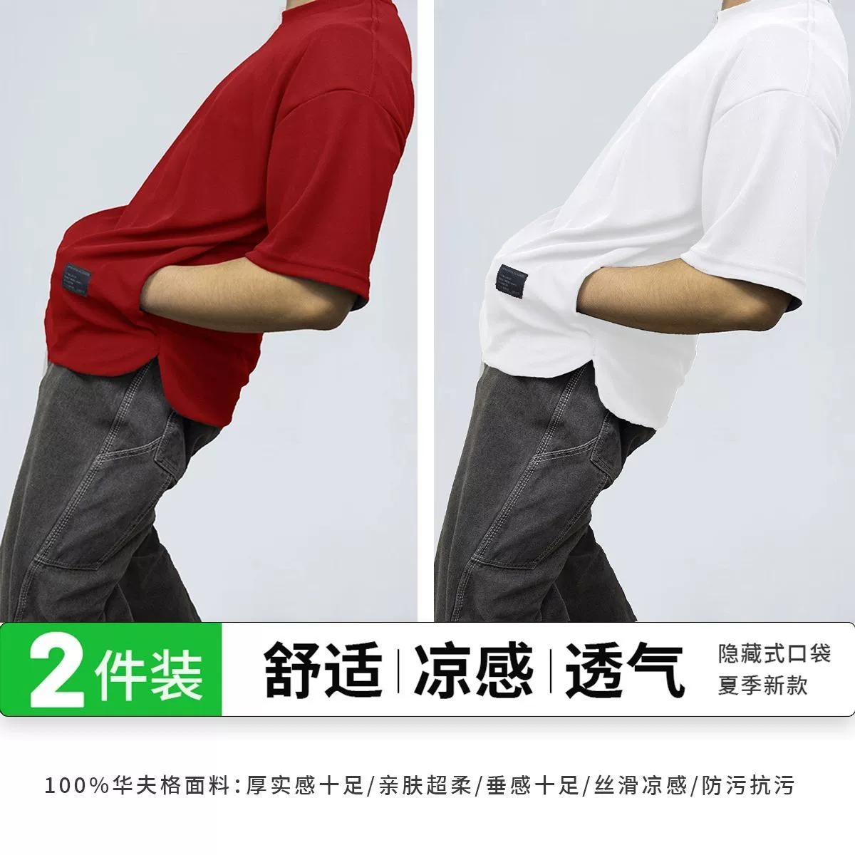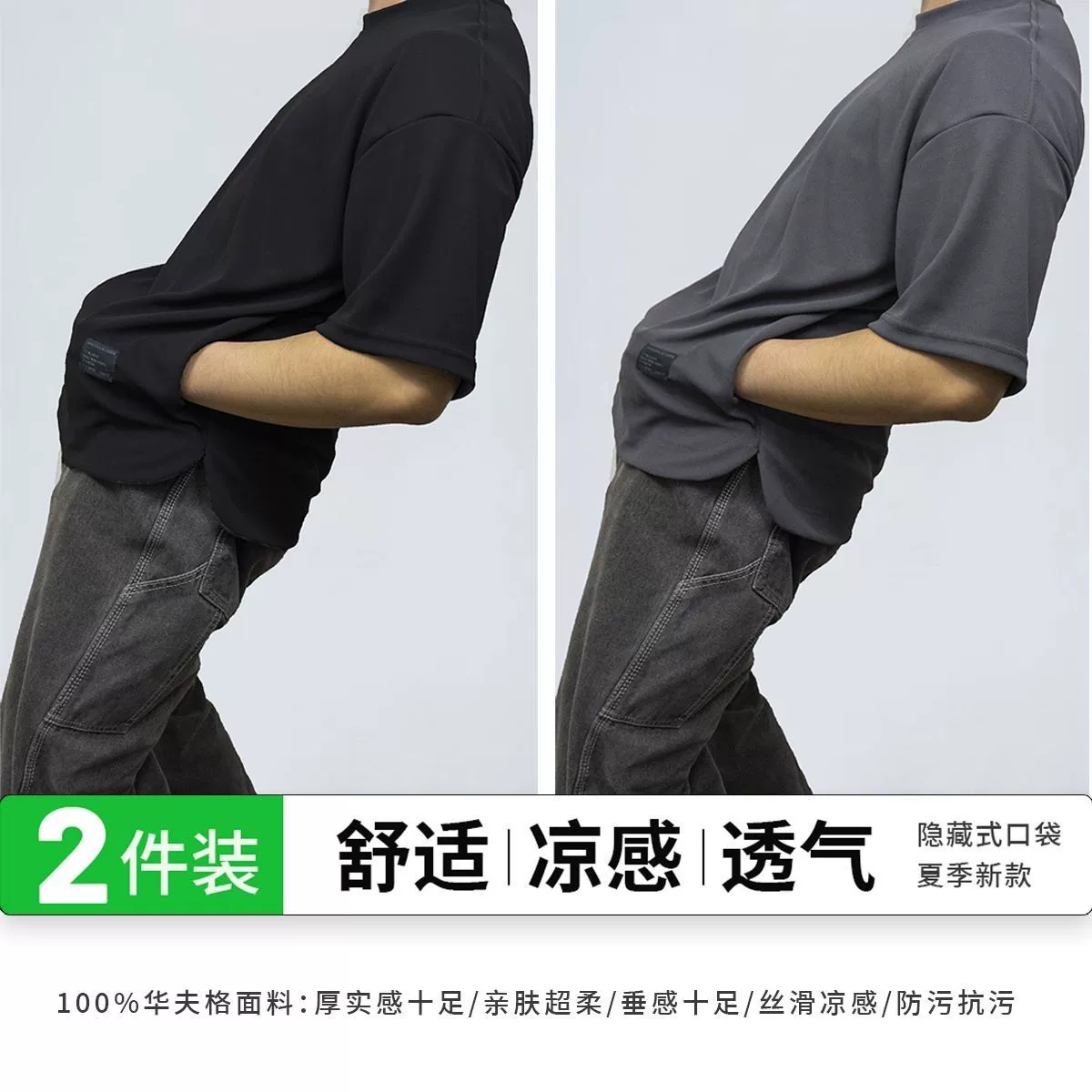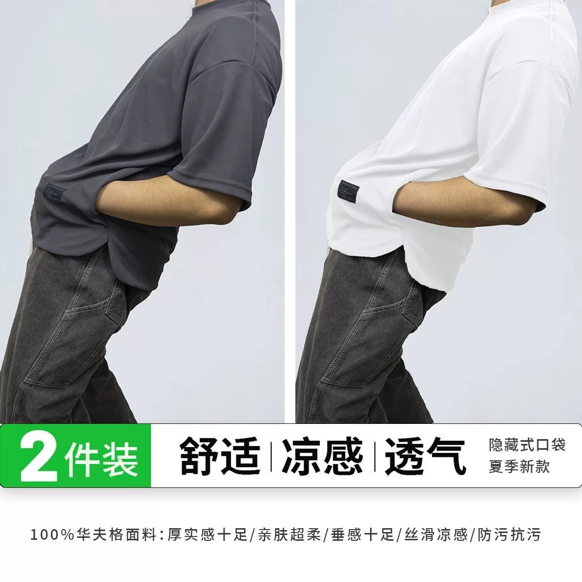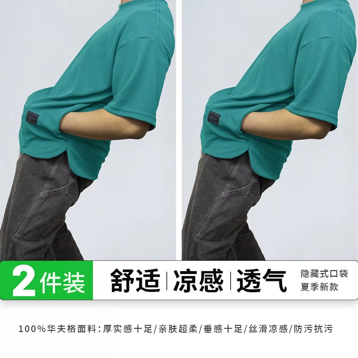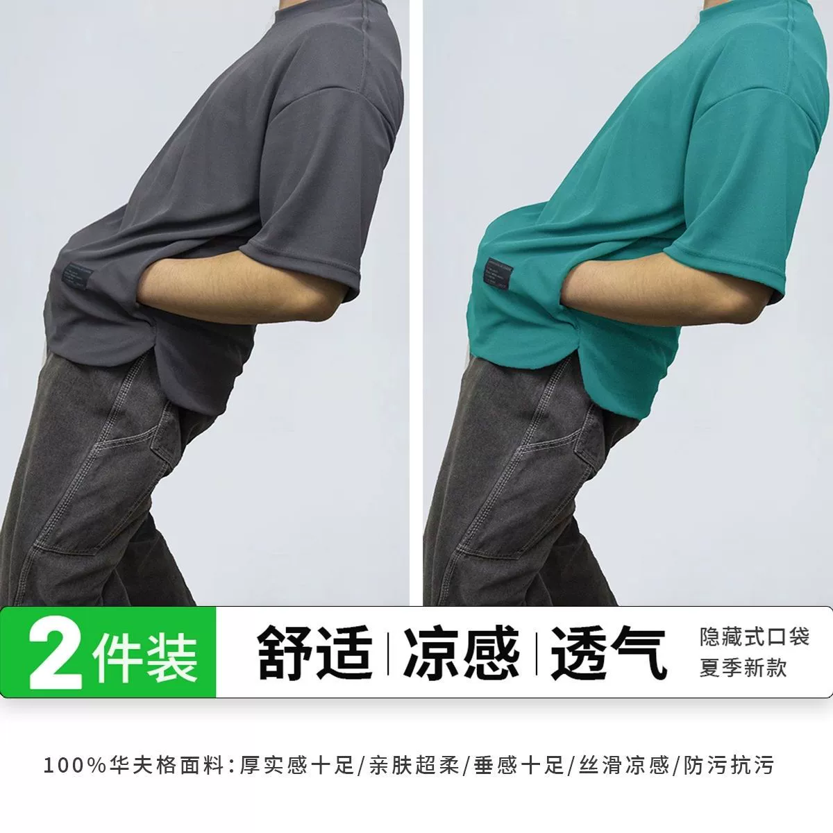 Heavy-duty pocketed, cool and breathable men's short-sleeved two-piece pack