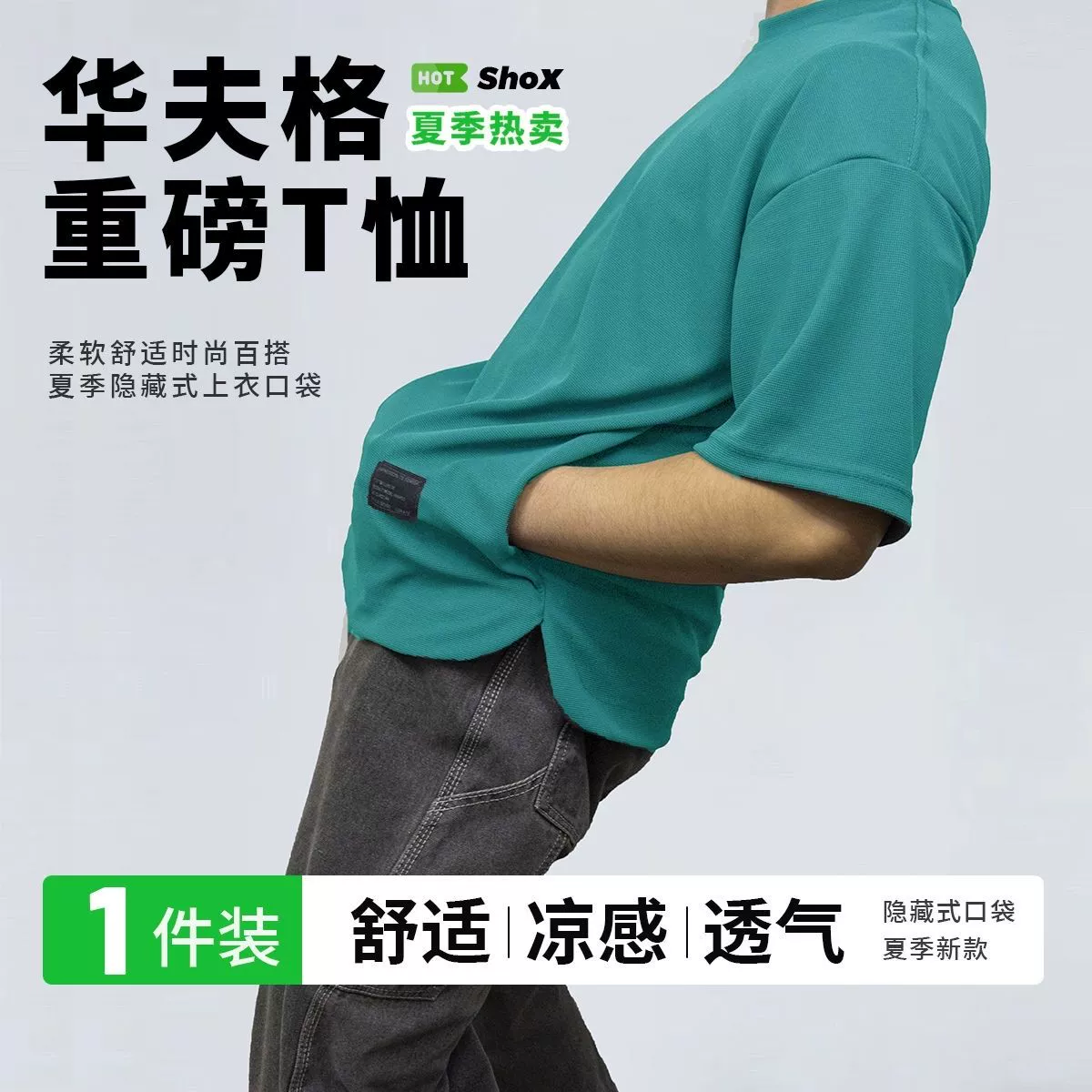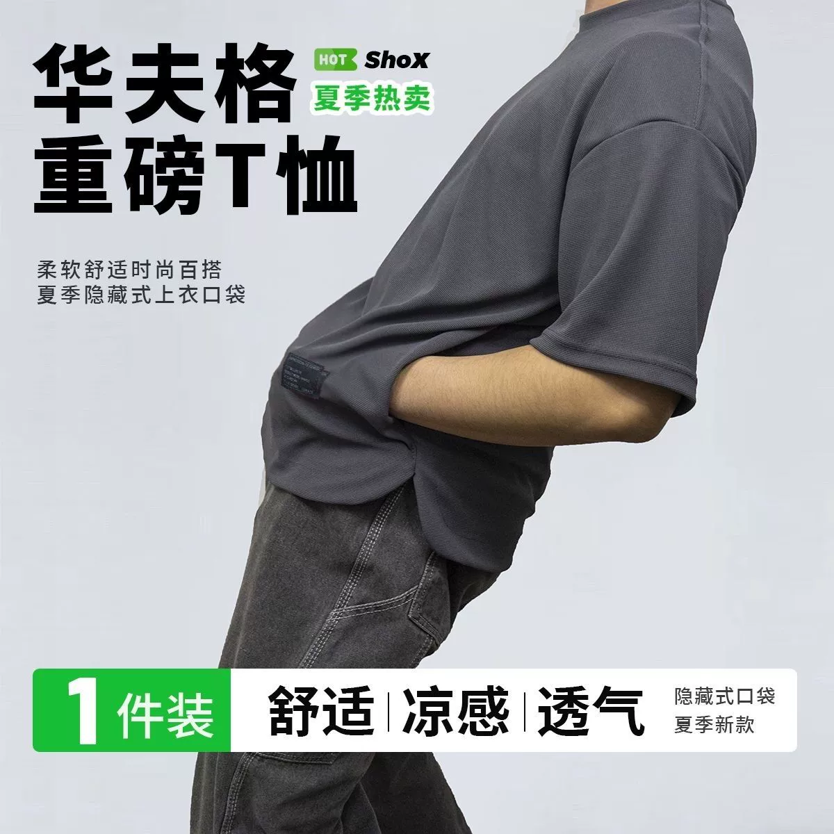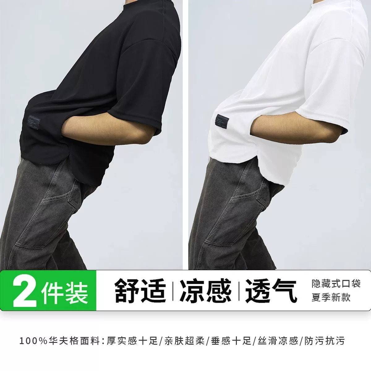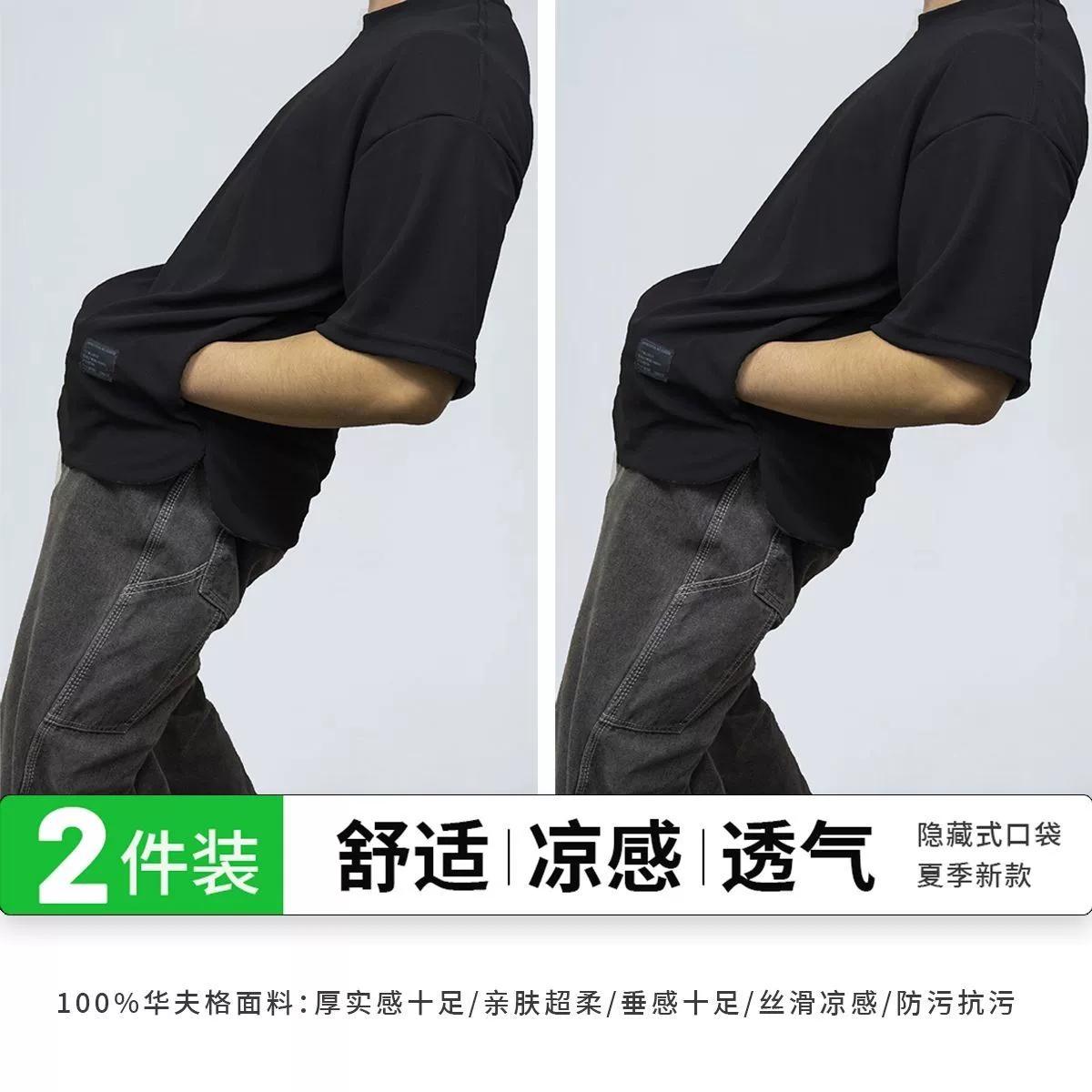 Heavy-duty pocketed, cool and breathable men's short-sleeved two-piece pack