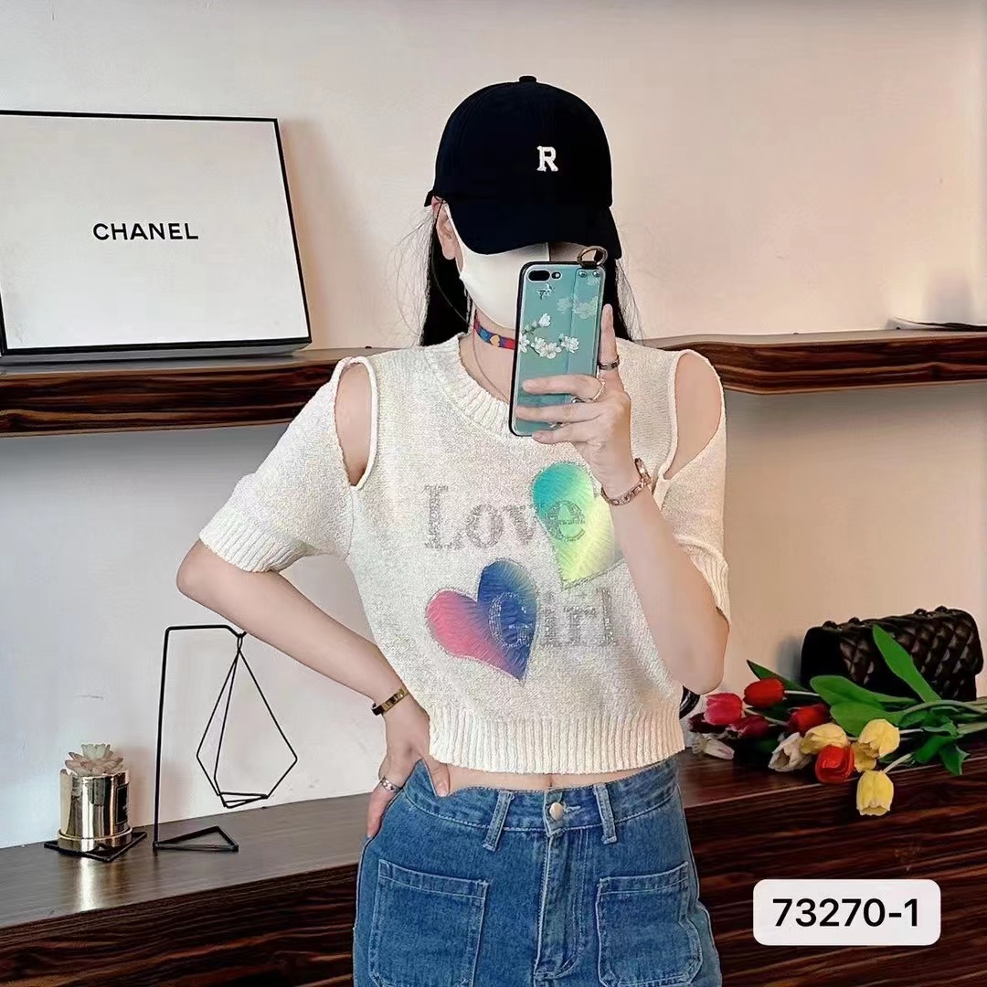 | nameOriginal | Heavy-duty Rhinestone Hollow-out Shoulder Short-sleeved Knit Sweater Women's Design Sense Niche Summer Pure Sweet Spice Girl Short Top |