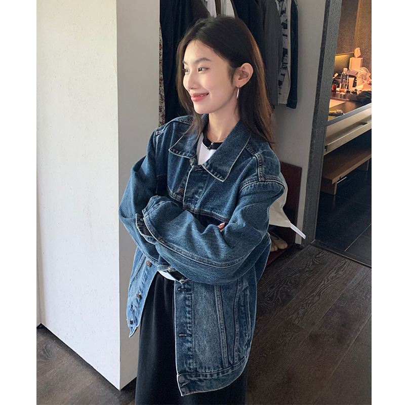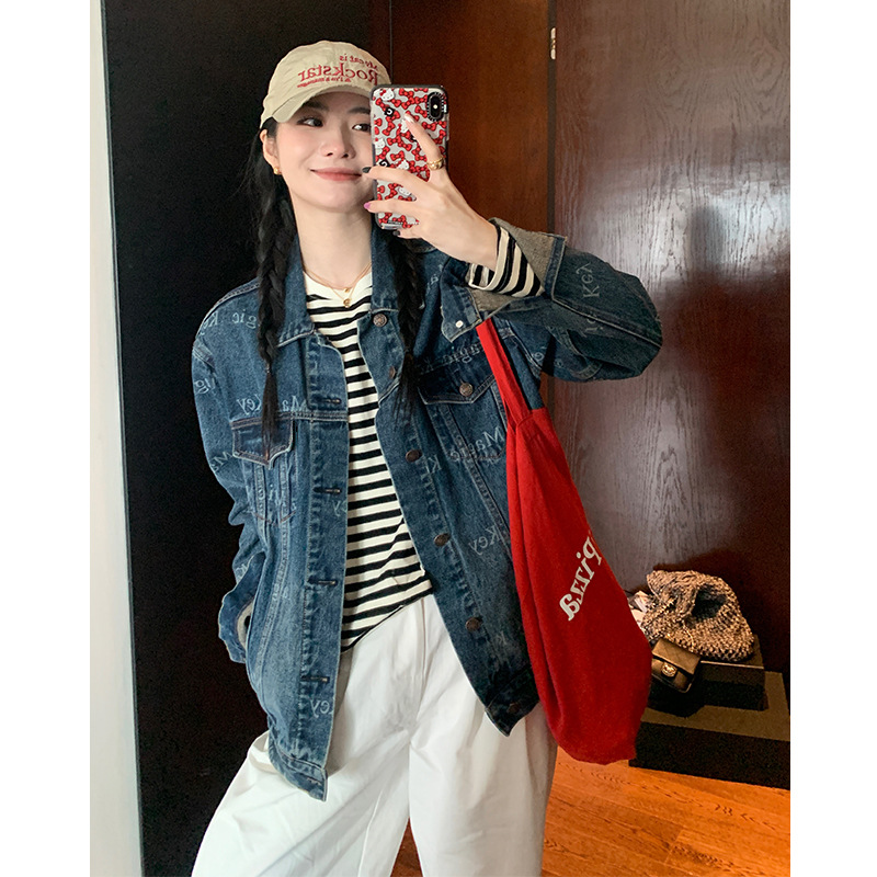 | nameOriginal | Heavy-duty textured letter design Denim coat for women 2024 early spring new neutral loose all-match retro jacket fashion |