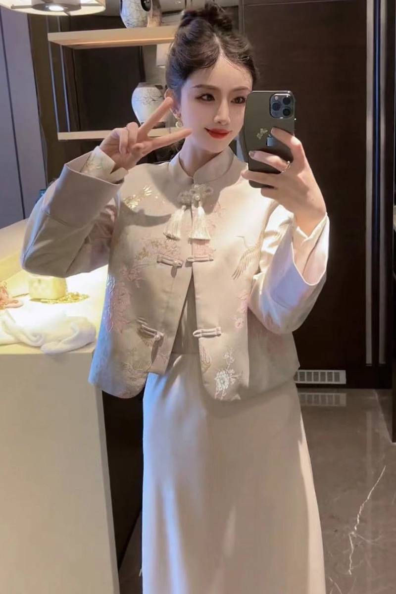 | nameOriginal | Heavy Embroidered Pearl Buckle New Chinese Style National Style Coat Women's 2024 Early Spring New Style Chanel Style All-match Top Trendy |