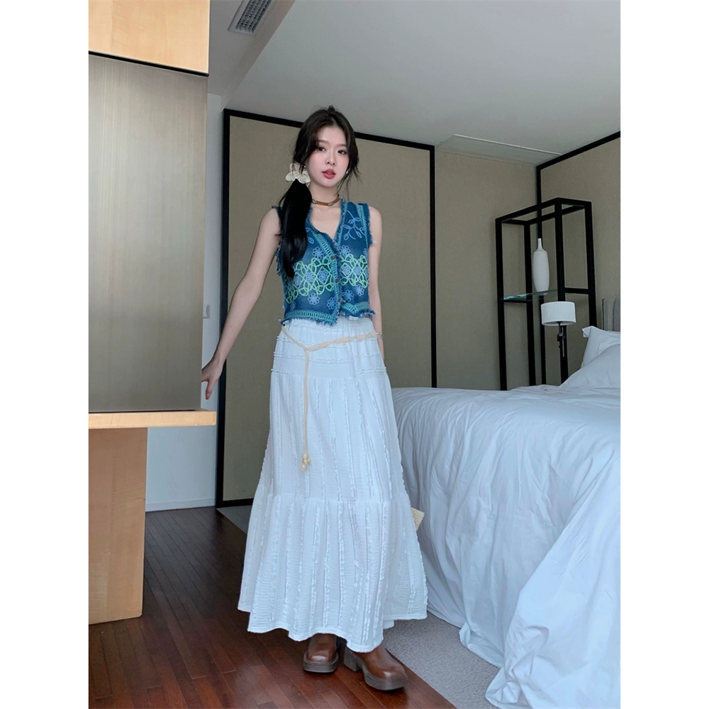 | nameOriginal | Heavy embroidery denim vest for women summer white crochet |