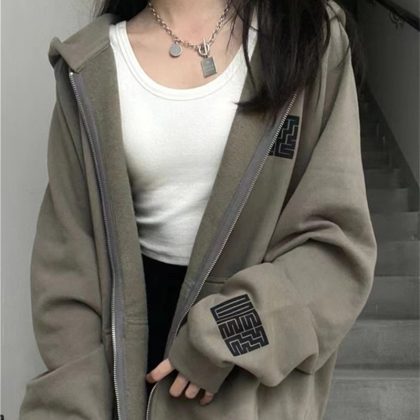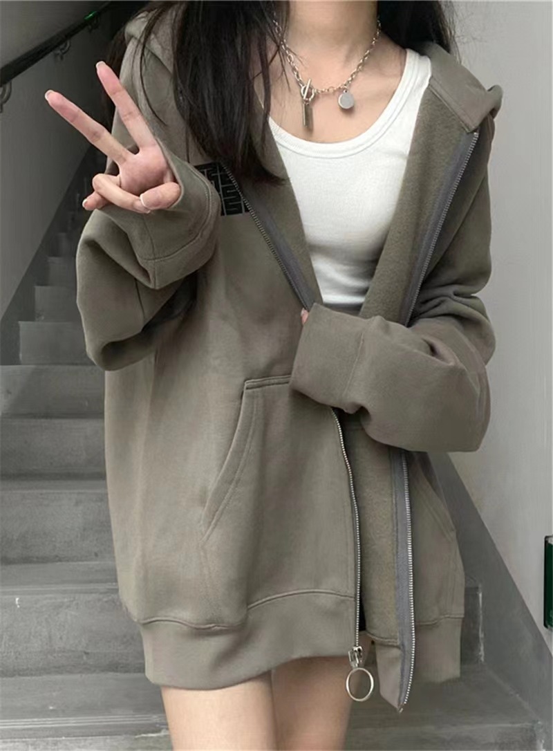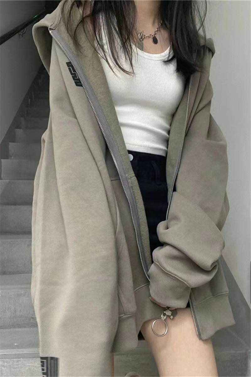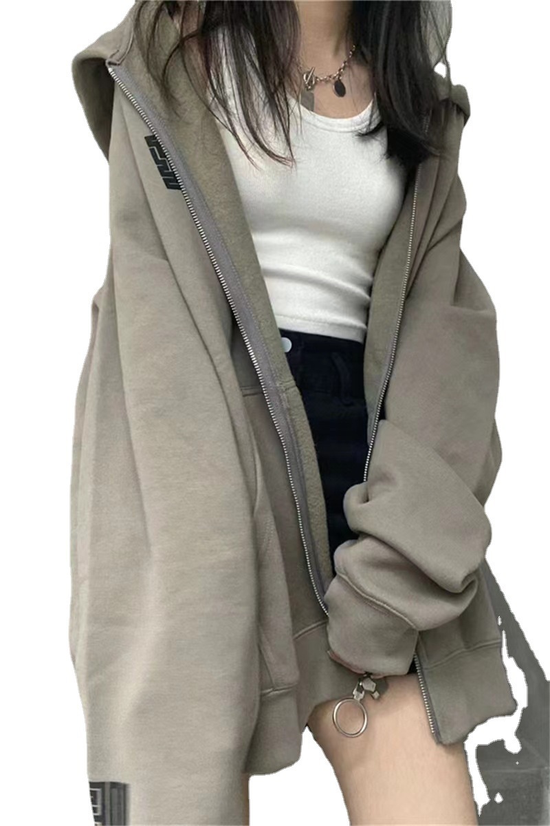 | nameOriginal | Heavy European and American High Street Hooded Sweater Women's Spring and Autumn Loose Trendy ins Lazy Hong Kong Style chic Thin Zipper Jacket |