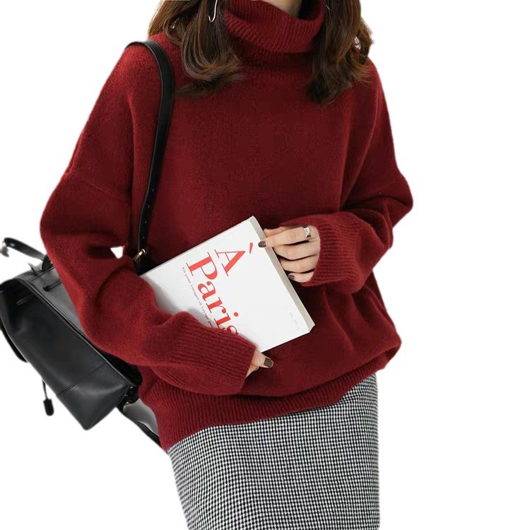 | nameOriginal | Heavy high collar solid color padded sweater women fall/winter loose pullover lazy wind base sweater 158-150 |