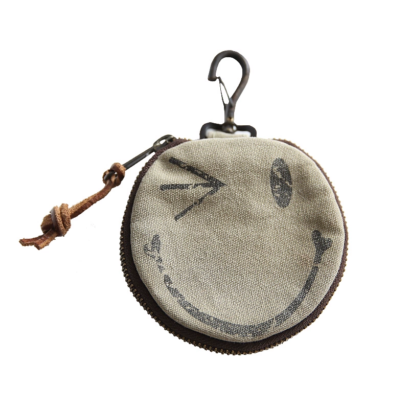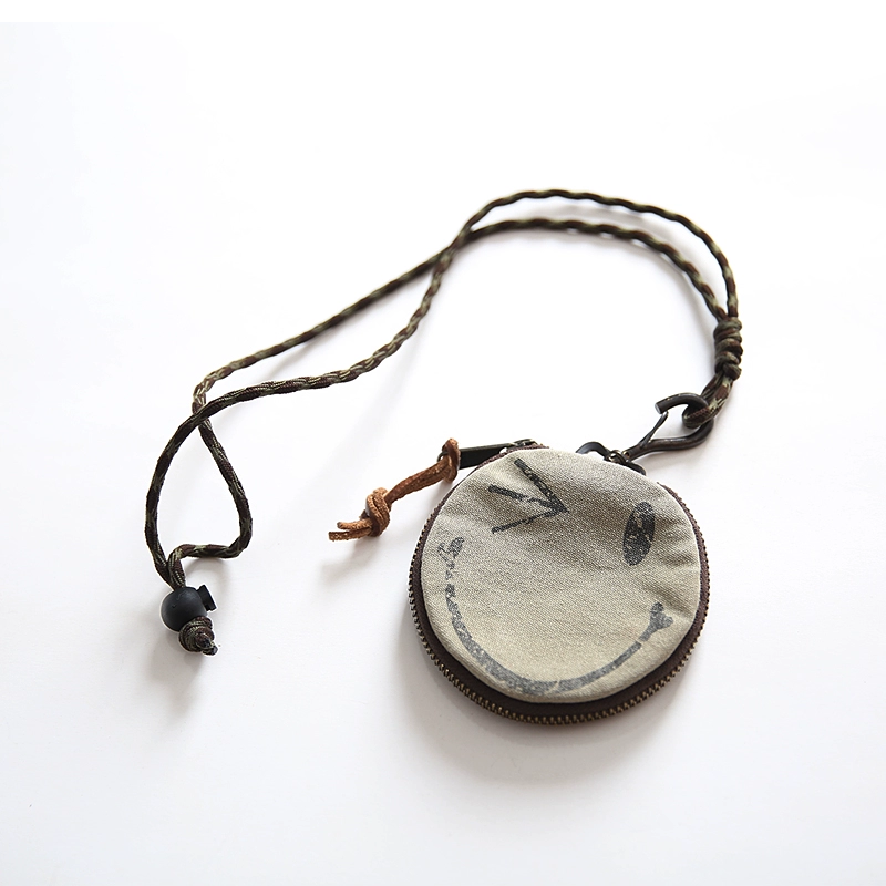 Heavy industrial washed canvas military style smiley face key storage bag pendant coin purse mini headphone bag hanging neck style 6