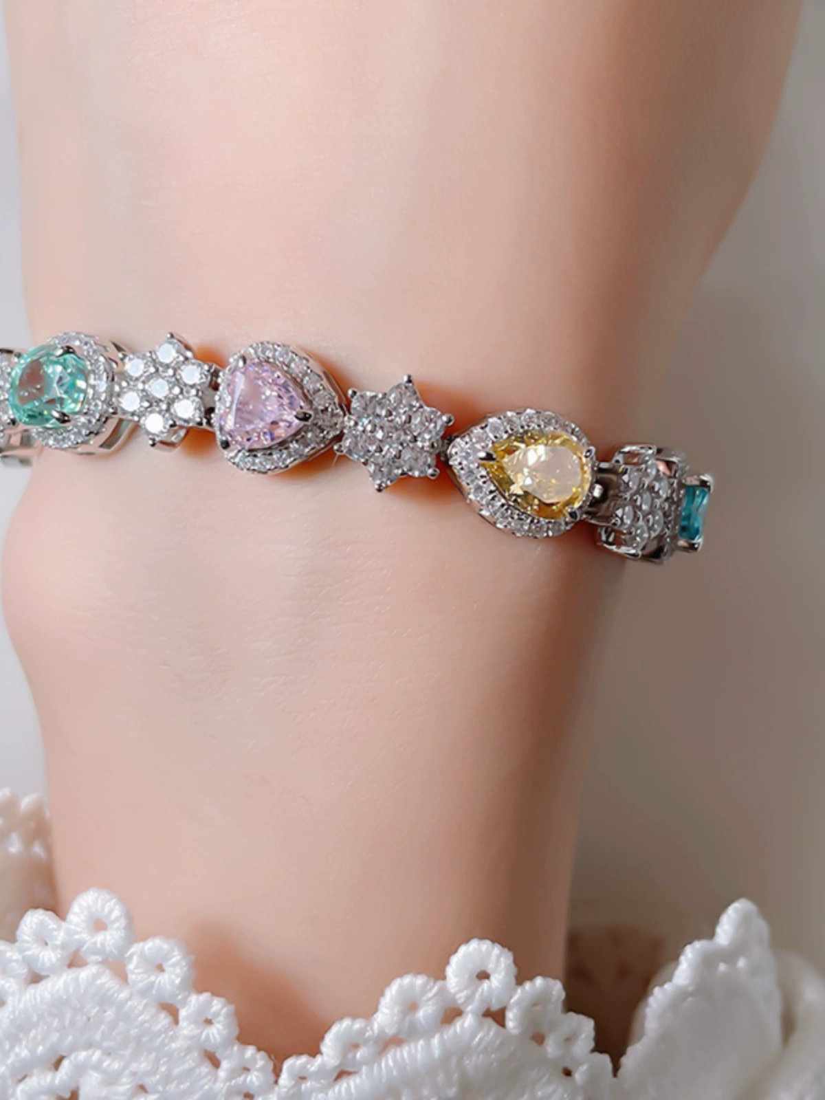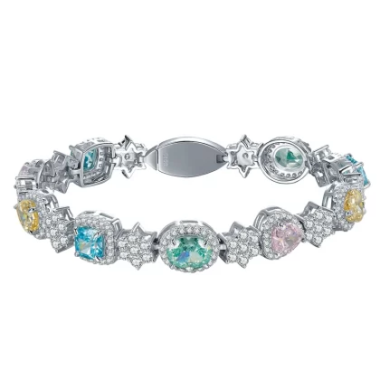 | nameOriginal | Heavy industry high carbon diamond colored diamond bracelet simple 925 sterling silver sweet fashion niche princess non-fading hand inlaid |