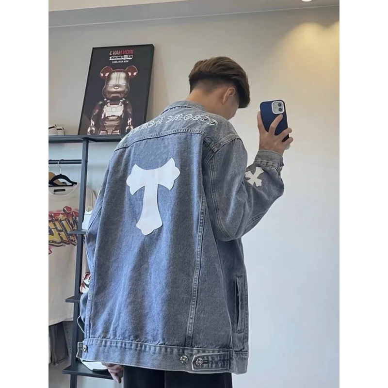 | nameOriginal | Heavy Industry High Version Crowe Women's and Men's Letters Sanskrit Embroidered Cross Skin Washed Old Denim Jacket |