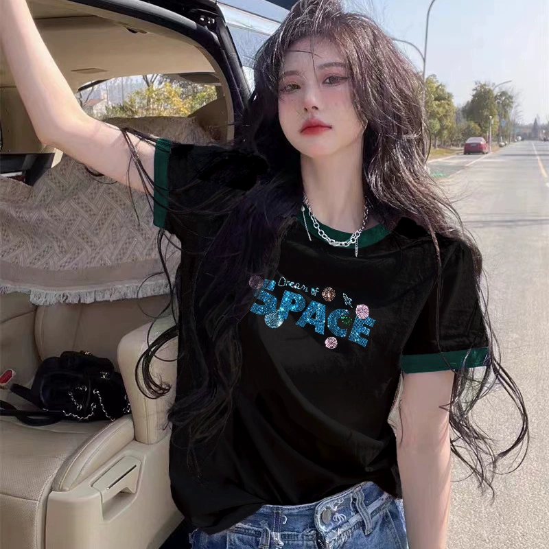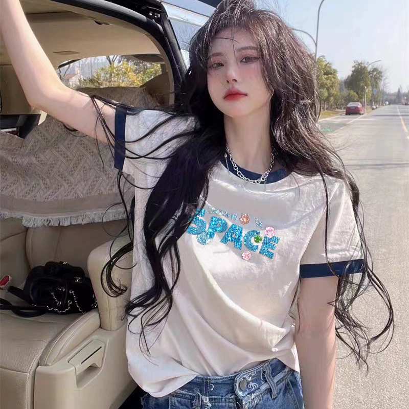 | nameOriginal | Heavy industry hot diamond lettering loose color block short-sleeved T-shirt |