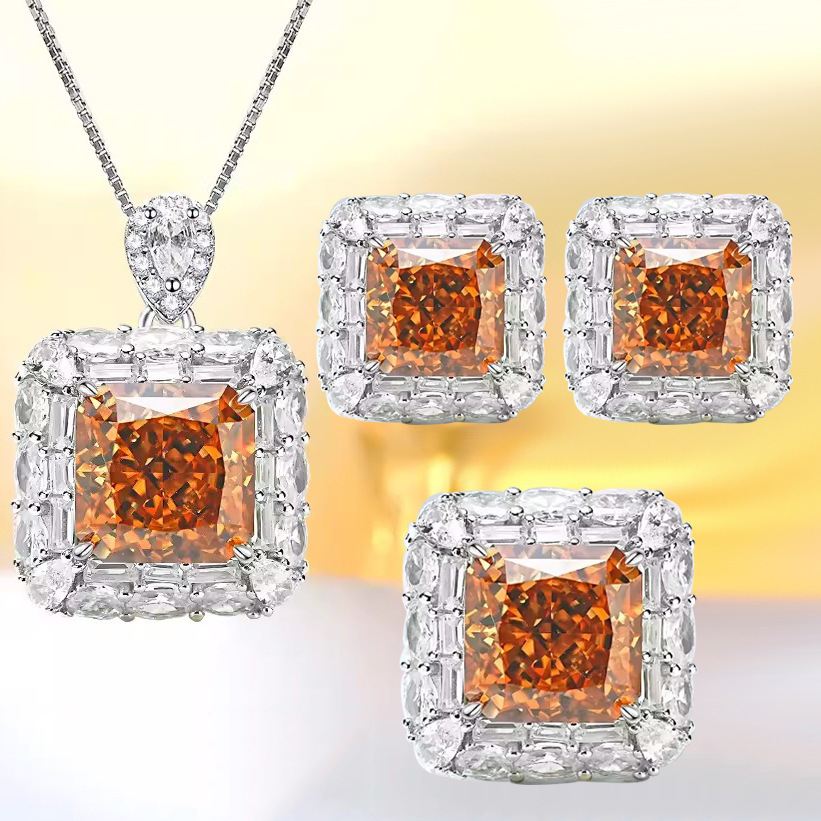 | nameOriginal | Heavy Industry Luxury Square Diamond Morgan Ice Flower Cut suit Papalacha Pendant Inlaid with High Carbon Diamond Earrings Color Treasure Ring |