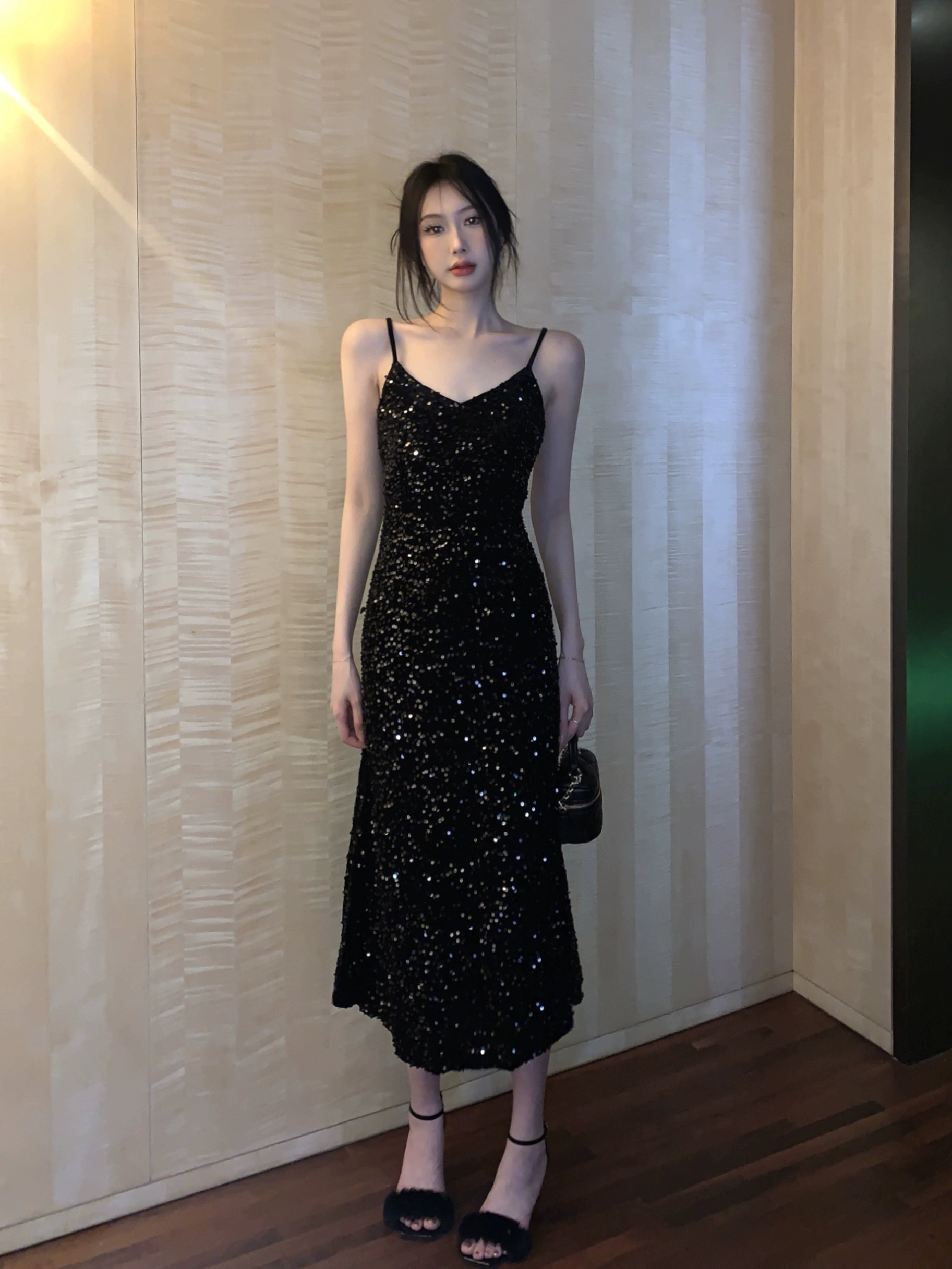 | nameOriginal | Heavy industry suspender dress summer temperament sexy sequins |